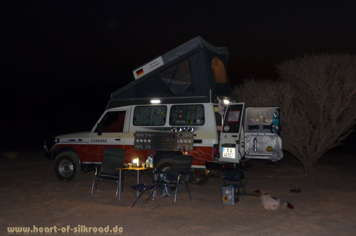 Die Stoßstangen zeigten sich schon bei unserer ersten Testtour in die Sahara als Schwachpunkt und wurden durch australische Modelle ersetzt. Das Fahrwerk wurde verstärkt und der Zusatztank erweitert den Dieselvorrat auf 210 Liter.