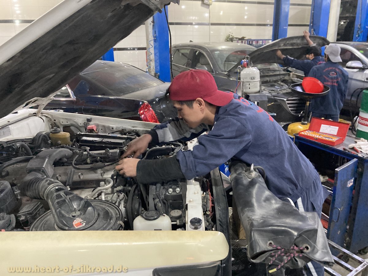 Während der vierwöchigen Ramadan-Zeit arbeiten die Autowerkstätten in Saudi-Arabien von 21 Uhr bis 1:30 Uhr in der Nacht. Irgendwo in Riad organisiert das Werkstattteam um Mitternacht das passende Ersatzteil, das gerade noch rechtzeitig von einem Boten in die Werkstatt gebracht wird. Die Improvisationskunst ist in diesem Land immer wieder beeindruckend. Später erfahren wir, dass sich der Besitzer der Werkstatt persönlich beim Leiter des zentralen Toyota-Ersatzteillagers für eine nächtliche Auslieferung eingesetzt hat. Die Freude ist bei uns sehr groß und wir müssen auch nur das Ersatzteil bezahlen. Die Arbeitszeit von drei Mechanikern über drei Stunden wird uns nicht berechnet. Als Deutsche sind wir in dem Land sehr willkommen und man möchte uns helfen.