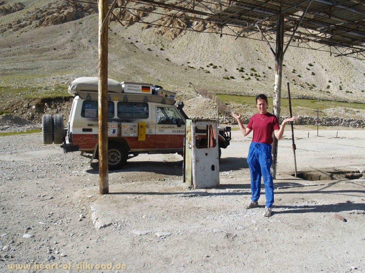 Dass man nie mit dem letzten Tropfen Diesel unterwegs sein sollte, haben wir ja bereits im Iran oder in Usbekistan gelernt. Oft war dort die nächste Tankstelle „trocken“ oder gänzlich stillgelegt.