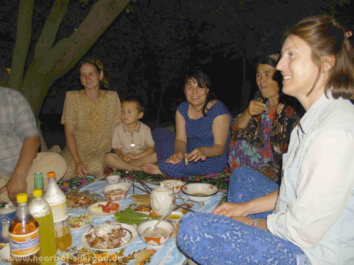 Auch uns bleibt es nicht erspart, hin und wieder in die großen Städte zu fahren, wobei wir dann immer versuchen ein günstiges Hotel mit Unterstellmöglichkeit für unser Auto zu finden. In Samarkand erlaubte uns der Hotelbesitzer des Furkat-Hotels sogar unser Auto im Innerhof abzustellen. Alle Gäste mussten daraufhin zum Essen zusammenrücken. Wir revanchierten uns, indem wir nicht müde wurden, die Bilder unsere Reise zu zeigen.