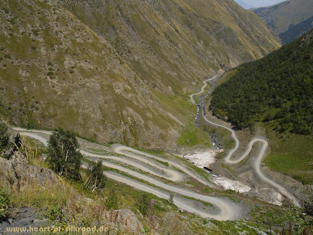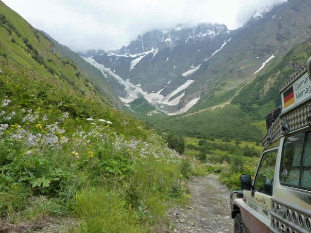 Auf der jahrhundertealten Militärstraße nähern wir uns aus südlicher Richtung dem Großen Kaukasus. Am Weg liegen die Gräber deutscher Kriegsgefangener, die nach dem Zweiten Weltkrieg diese exponierte Hochgebirgsstraße ausgebaut haben und dafür an diesem unwirtlichen Ort ihr Leben ließen. Kurz vor der russischen Grenze ist Endstation, denn die Grenze ist seit dem russisch-georgischen Krieg im Jahr 2008 für Ausländer gesperrt. Leider gibt es für uns an keiner Stelle die Möglichkeit, den Kaukasus in Richtung Norden zu überqueren. Georgien hat mit seinem politischen Alleingang, den eigenen und den westlichen Einfluss in dieser Region zu erweitern, mit einem erheblichen Gebietsverlust bezahlt. Immerhin hat sich die Lage zwischen den Kriegsparteien inzwischen beruhigt und das Reisen ist problemlos möglich. Es bleibt zu hoffen, dass es auch nach den Olympischen Winterspielen 2012 im nahen Sochi friedlich bleibt.