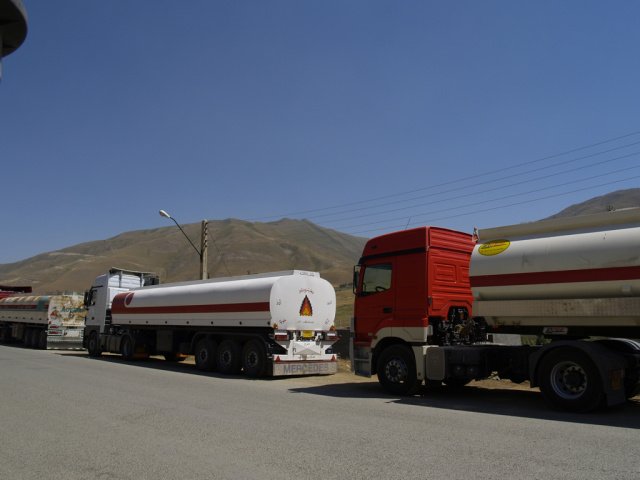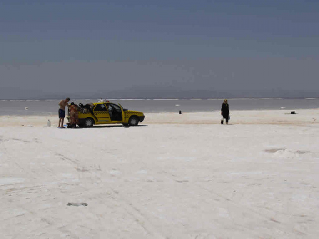 Uns erwarten an diesem kleinen Grenzposten einige Containerbüros und Barracken. Wir merken deutlich, dass man an dieser entlegenen Stelle mit Touristen - und besonders solche mit eigenem Fahrzeug - nichts anfangen kann. Hier scheint nur der kleine Grenzverkehr der lokalen Bevölkerung stattzufinden. Außerdem überqueren unzähliger LKW diese Grenze in beide Richtungen. Von Embargo gegenüber dem Iran ist an dieser Grenze nichts zu spüren. Die Ausreise aus dem Irak können wir etwas beschleunigen, in dem wir die Handynummer des Grenzschutzkommandanten vorzeigen. Man möchte wohl das direkte Gespräch mit dem obersten Boss vermeiden und so geht die Abfertigung nach einigen Anlaufschwierigkeiten reibungslos. Auf der iranischen Seite sieht die Grenzabfertigung schon ganz anders aus. Wir stehen einige Zeit in der glühenden Sonne auf einem staubigen Vorplatz. Kopftuch und Mantel sind für Ute wieder Pflichtausstattung, nachdem es im Nord-Irak wesentlich freizügiger war. Ein Grenzbeamter überrascht uns mit der Äußerung, dass unser Carnet im Iran keine Gültigkeit hat. Nach einigem Hin und Her konnten wir diesen Irrtum aber ausräumen. Die weiteren Formalien sind sehr langwierig und anschließend erfolgt eine sehr gründliche, dreimalige Durchsuchung unseres Fahrzeugs. Als dann noch eine Flasche syrischer Wein gefunden wird, (den wir eigentlich als Souvenir mit nach Hause nehmen wollen) wird die Situation etwas zäh. Langwierige Verhandlungen sowie unser Angebot, den Wein an Ort und Stelle in den Sand zu gießen bleiben erfolglos und am Ende wird die Flasche wie bei einem geheimen Austausch von Spionen sehr theatralisch an der Grenzlinie wieder den „Arabern“ zurückgegeben. Was für ein Schauspiel, bei dem wir leider keine Fotos machen dürfen. Endlich erreichen wir den iranischen Teil Kurdistans und wir sind sehr froh, diese schwierige Grenze gemeistert zu haben.