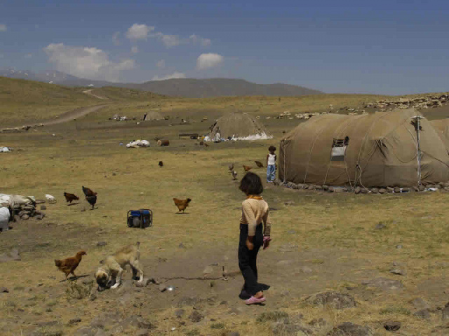 Weiter geht es in Richtung Nordost zum Mount Sabalan (4811m). Zusammen mit unseren iranischen Freunden schrauben wir uns auf staubigen Pisten über 3000 Meter hohe Pässe. Um uns herum erleben wir eine sehr schöne Gebirgslandschaft mit grünen Bergwiesen, Schneefeldern und immer wieder kleine Gebirgsdörfer mit malerischen Lehmhäusern. Wir werden überall sehr freundlich begrüßt und man versorgt uns mit Feuerholz, Eiern, Honig oder Brot. Hier in diesen Höhen leben im Sommer auch einige Nomaden mit ihren Viehherden in traditionellen Filzjurten. Neben den sehr schönen Landschaften erleben wir den Iran mit seinen Bewohnern wieder einmal als äußerst gastfreundliches und liebenswürdiges Land. Immerhin sind wir schon das vierte Mal hier.