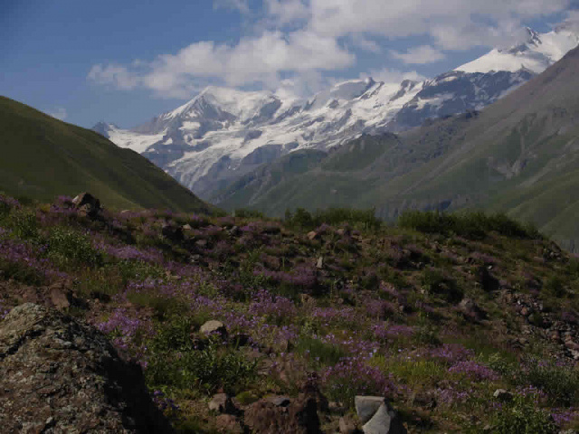 Ein weiteres Highlight in Georgien ist die Region Svanetien im äußersten Nordwesten an der Grenze zu Abchasien und Russland. Die Region ist nur über zwei Fahrwege erreichbar, wovon die westlich gelegene Strecke gerade für normale Pkw ausgebaut wird. Man investiert sichtbar in den Tourismus. Die ganze Innenstadt von Mestia ist eine einzige Baustelle. In Mestina stehen 42 Wehrtürme, die mit unterirdischen Tunneln verbunden sind und als UNESCO-Weltkulturerbe gelistet sind. Man sagt, dass diese sehr unzugängliche und wehrhafte Region als einziges Gebiet niemals Teil des mongolischen Weltreiches war. Wir schlagen unser Camp für einige Tage im nahe gelegenen, sehr schönen Doldra-Tal auf. Die Friedrich-Ebert Stiftung hat in der gesamten Region ein Netz von markierten Wanderwegen anlegen lassen, für die auch Wanderkarten erhältlich sind. Sicherlich eine sehr sinnvolle Maßnahme zur Unterstützung der wirtschaftlichen Entwicklung. Auch wir testen die Wanderwege und gehen auf sehr steilen Pfaden zum Ushba-Gletscher.