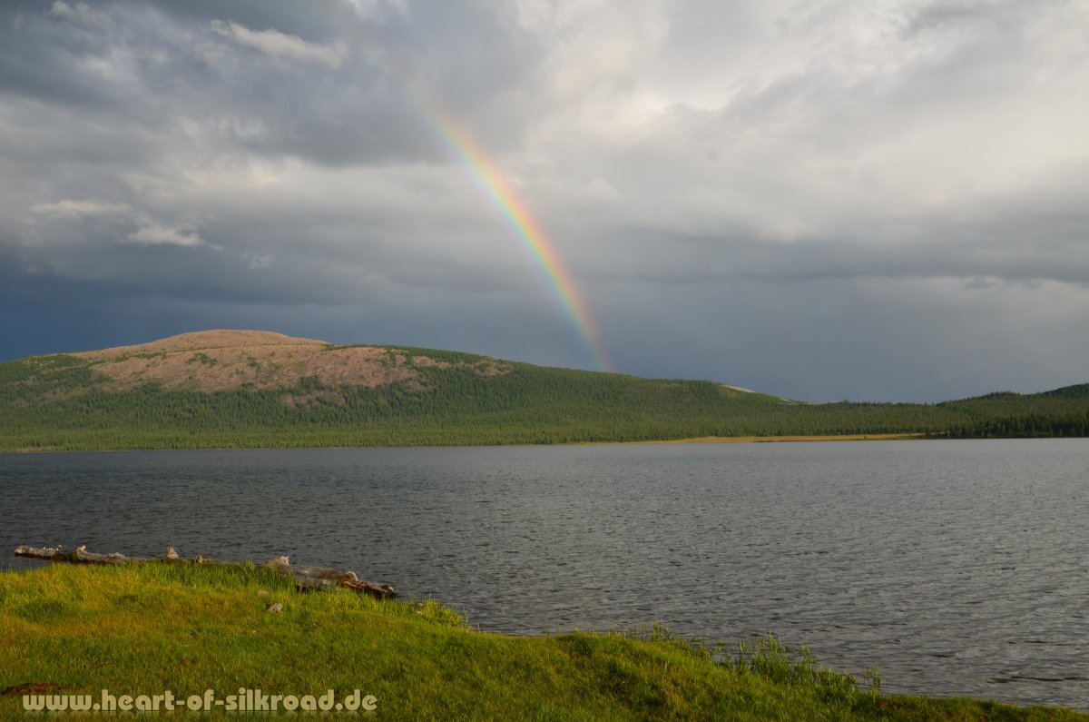 GalerieIm Osten und Süden waren wir schon - also fahren wir als nächstes in den „wilden Westen“ von Tuwa zu den Halbnomaden am Milchsee. Die Fahrt durch die Gebirgstaiga ist nochmals anspruchsvoll und wir dürfen mehrmals unsere Sandbleche im Sumpf einsetzen. Wir sind das einzige Auto weit und breit, weil man in dieser Gegend sehr viel besser mit einem Pferd unterwegs ist. Ab und zu besuchen uns unsere Nachbarn aus der einige Kilometer entfernten Jurte und spendieren uns Pinienzapfen als Beilage zum Tee.