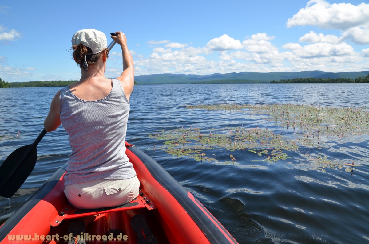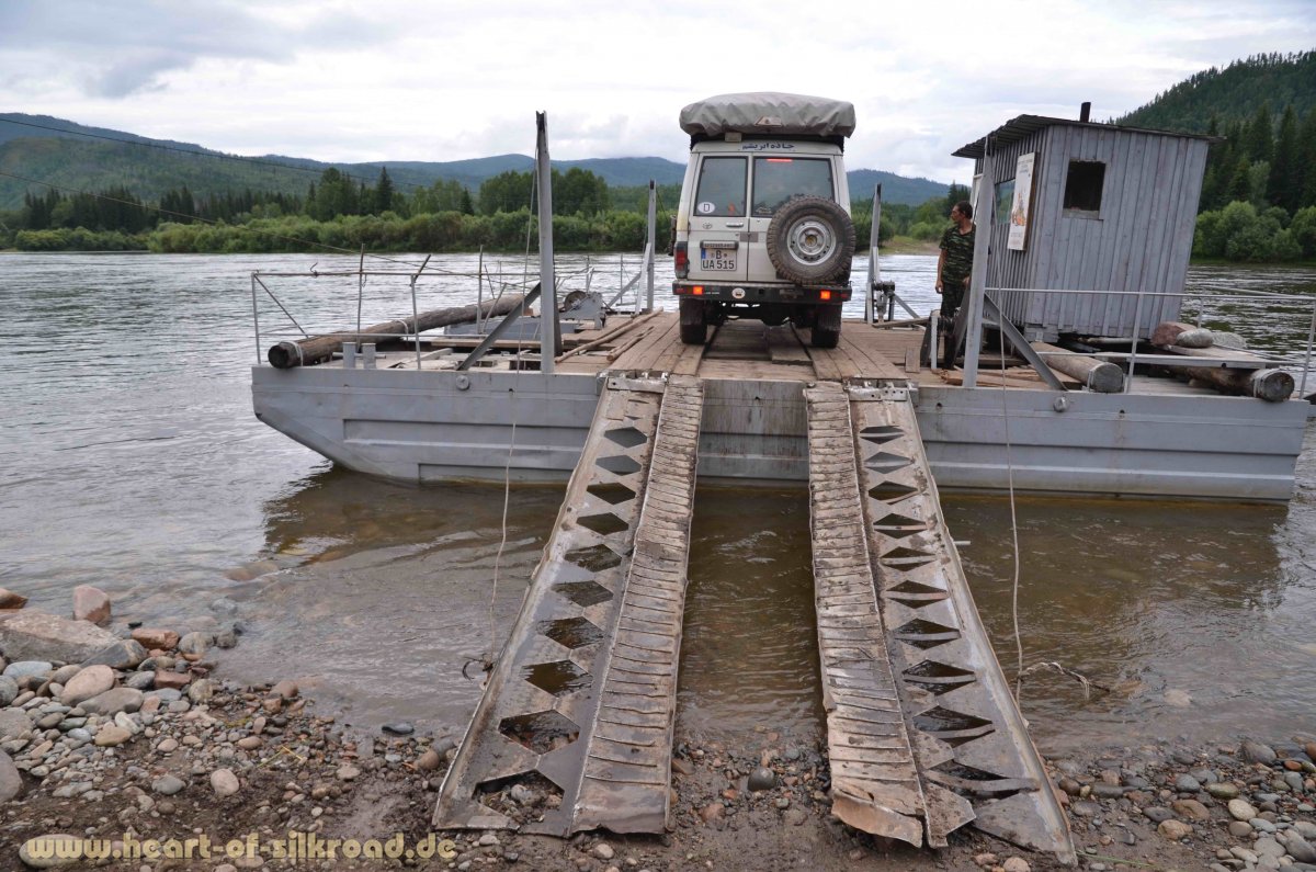 Die erste längere Tour führt uns auf holprigen Pisten in den Nordosten der Gebirgstaiga von Todzha. Hier im Sayan-Gebirge sehen wir sogar die ersten Rentiere. In diesem Gebiet entspringt auch der Jenissej, bevor er nach knapp 3500 Kilometern im Nordpolarmeer mündet. An vielen Stellen kann man den Jenissej nur auf motorlosen Seilfähren überqueren. Am Todzha-Bergsee angekommen, unternehmen wir die ersten Touren mit unserem Expeditionsschlauchboot. Für die Fischer ist es unverständlich, wie man mit einem Boot nur so zum Spaß rumfahren kann.