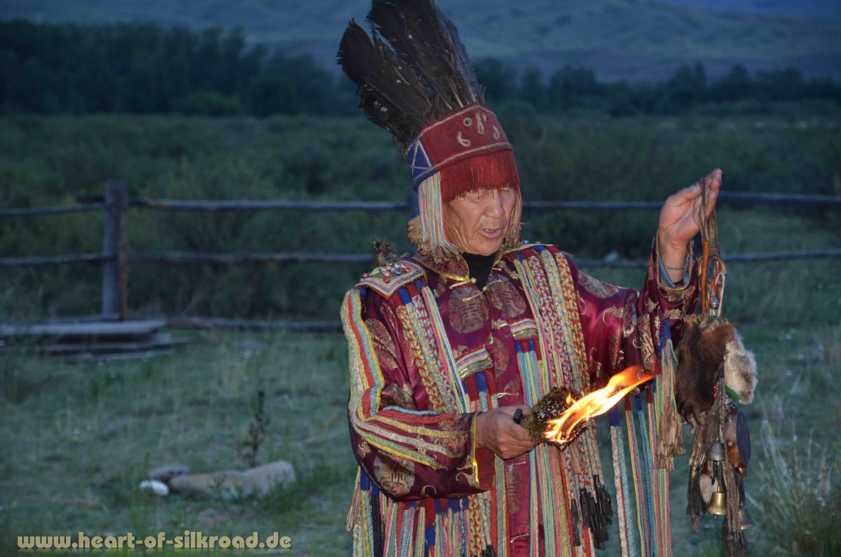 Unser erster Weg führt uns nach Kyzyl, der Hauptstadt Tuwas, in ein kleines touristisches Jurtencamp, das uns als Basislager für unsere Mehrtagestouren dient. Hier erleben wir auch zusammen mit einer französischen Ärztegruppe unsere erste Feuerzeremonie mit einem Schamanen. Die Ärzte haben von den Heilungserfolgen der Schamanen gehört und wollen sich darüber vor Ort informieren. Am nächsten Tag geht es in ein Krankenhaus, in dem ausschließlich Schamanen arbeiten. Die Schamanen haben eine Ähnlichkeit mit den nordamerikanischen Indianern. Diese Ähnlichkeit ist nicht zufällig, denn mittlerweile wurde genetisch nachgewiesen, dass die indianischen Vorfahren vor einigen tausend Jahren über die zugefrorene Beringstraße aus Tuwa kamen.