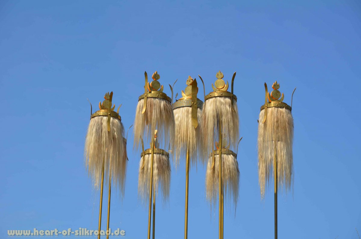 Im Nationalmuseum von Kyzyl besichtigen wir im Tresorraum das skythische Gold. Dieser Goldschatz wurde erst im Jahr 2003 von einem deutsch-russischen Archäologen-Team in einem Kurgan (Hügelgrab eines Skythen-Königs) in Tuwa gefunden und zählt zu den weltweit bedeutendsten Goldschätzen.