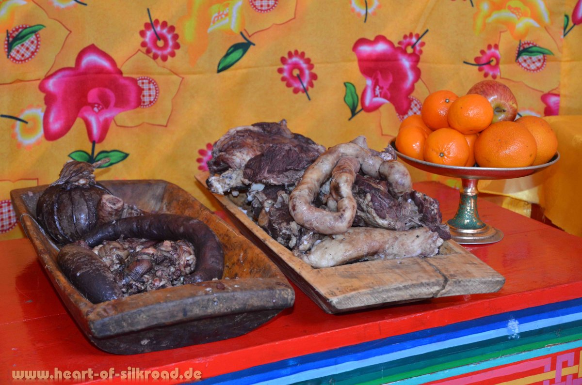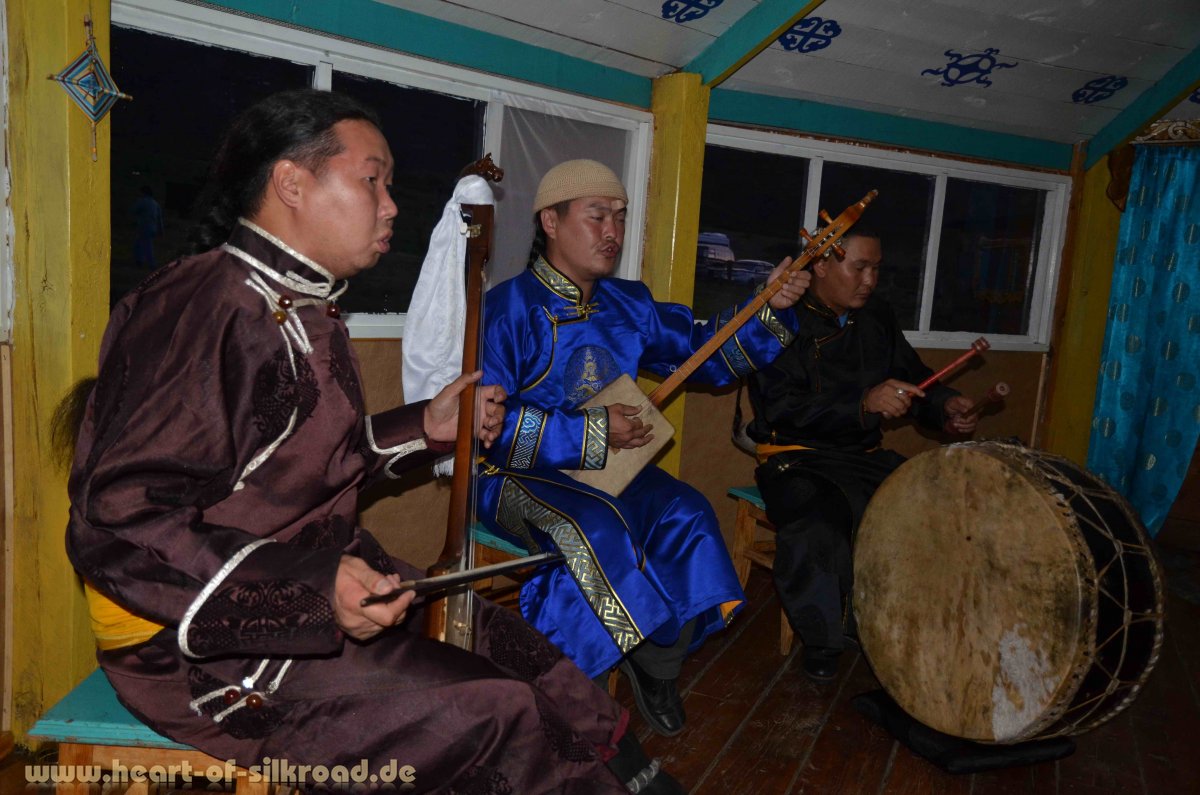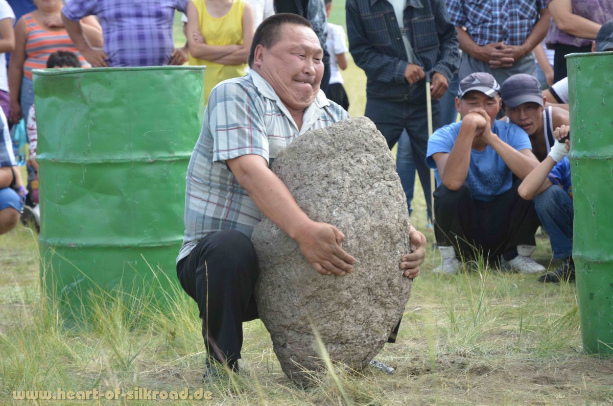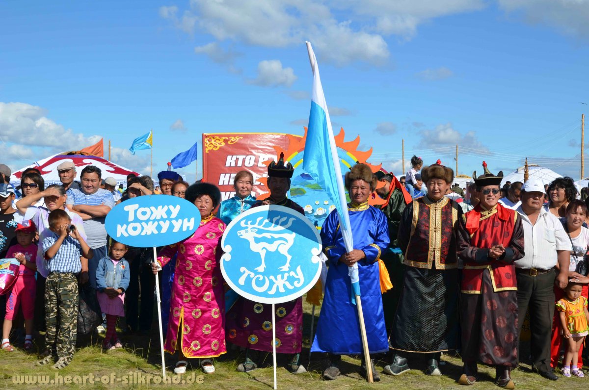 Mitte August findet traditionell das Naadym-Fest statt. Zu diesem Fest kommen alle Stämme Tuwas in Kyzyl zusammen und präsentieren ihre regionalen Trachten, die Jurten und Zeltbehausungen Neben dem eigentlichen Reitwettkampf finden noch Ringkämpfe sowie Gewichtheben mit 120 kg schweren Steinen statt. Das Ganze hat schon fast Volksfestcharakter. Es wird gesungen, getanzt und natürlich gegessen. Eine typische Spezialität ist die Schafsblutwurst, die mit Innereien und Buttertee serviert wird. Wir erleben hier auch den in dieser Region praktizierten Kehlkopfgesang.