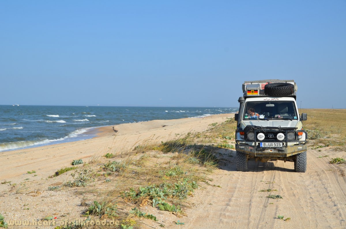 Am Asowschen Meer zieht sich ein 90 km langer schmale Landstreifen bis zum Festland der Ukraine hin. Wir genießen dieses einzigartige Naturereignis und sind endlich mal abseits der überfüllten Krim-Strände unterwegs.