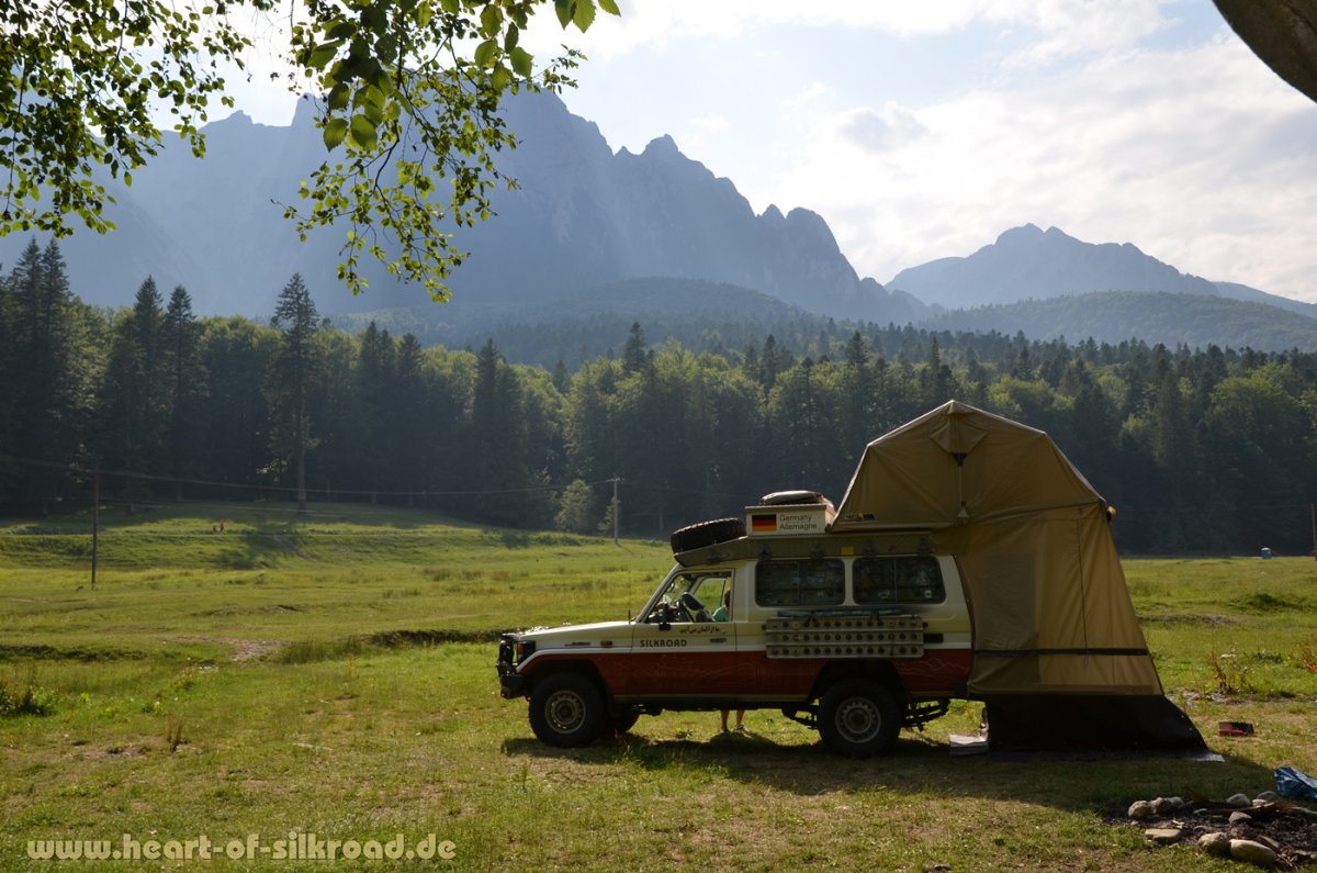 Eine gruselige Geschichte der anderen Art erleben wir, als wir bei einem wunderschönen Camp in den Karpaten nachts Bärenbesuch bekommen. Wir waren aber von den Einheimischen schon vorgewarnt worden und hatten ein riesiges Lagerfeuer entzündet und die Bewegungsmelder ums Auto gelegt. In der Hoffnung, dass die Bären unsere Lebensmittel im Auto nicht riechen, haben wir dann doch eine etwas unruhige Nacht im Dachzelt verbracht. Aber die großen Mülleimer an der Waldstraße waren in dieser Nacht wohl ergiebiger, so dass wir verschont blieben.