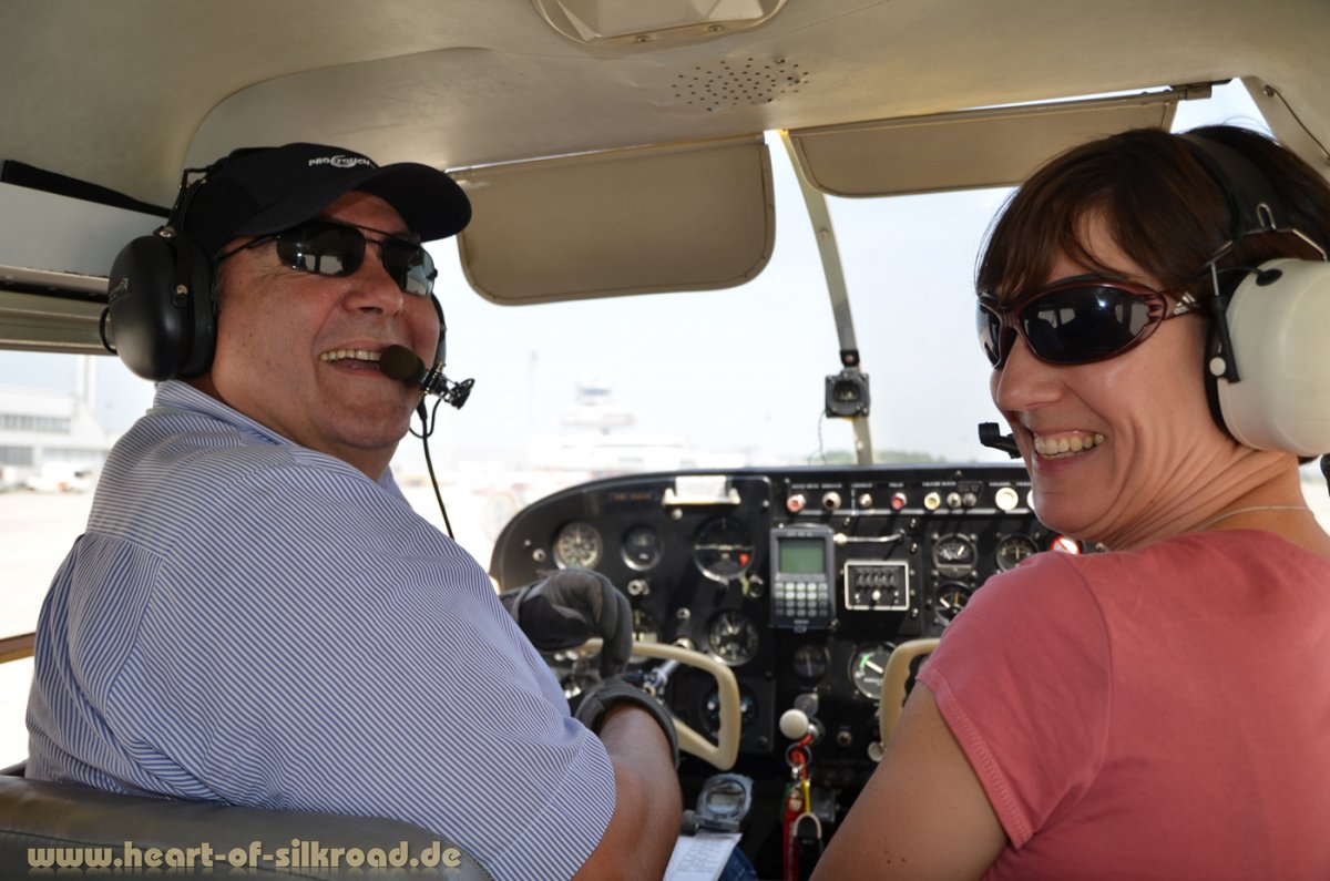 Von Berlin aus geht es zunächst in Richtung Österreich, wo wir unsere Freunde Harry und Elisabeth besuchen. Als wir zu unserer zweiten langen Tour im Jahr 2006 aufbrachen, hat uns Harry in Linz im strömenden Regen gestoppt. Er war gerade dabei, seine eigene Expedition nach China vorzubereiten, um die Flagge der österreichischen Olympiamannschaft auf dem Landweg nach Peking zu bringen (siehe auch http://www.defender110.at). Aus dieser Zufallsbegegnung hat sich eine langjährige Freundschaft ergeben. Als Traveller liegt man sehr oft auf der gleichen Wellenlänge. Harry hat uns mit einem mehrstündigen Rundflug in seiner Cessna überrascht und unser erstes Camp dieser Reise errichten wir in seinem Garten.