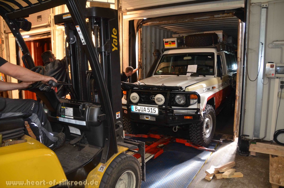 Die Reise in die Vereinigten Arabischen Emirate (VAE) beginnt mit der Verschiffung unseres Toyotas von Bremerhaven nach Dubai. Vier Wochen ist der Container unterwegs und wir sind sehr froh, als wir unser Auto nach einer viertägigen Zollprozedur im Hafen von Jebel Ali/Dubai wohlbehalten in Empfang nehmen können. Für die örtlichen Zollbehörden scheint die Abfertigung von touristischen Fahrzeugen aus dem Ausland eine besondere Herausforderung zu sein.