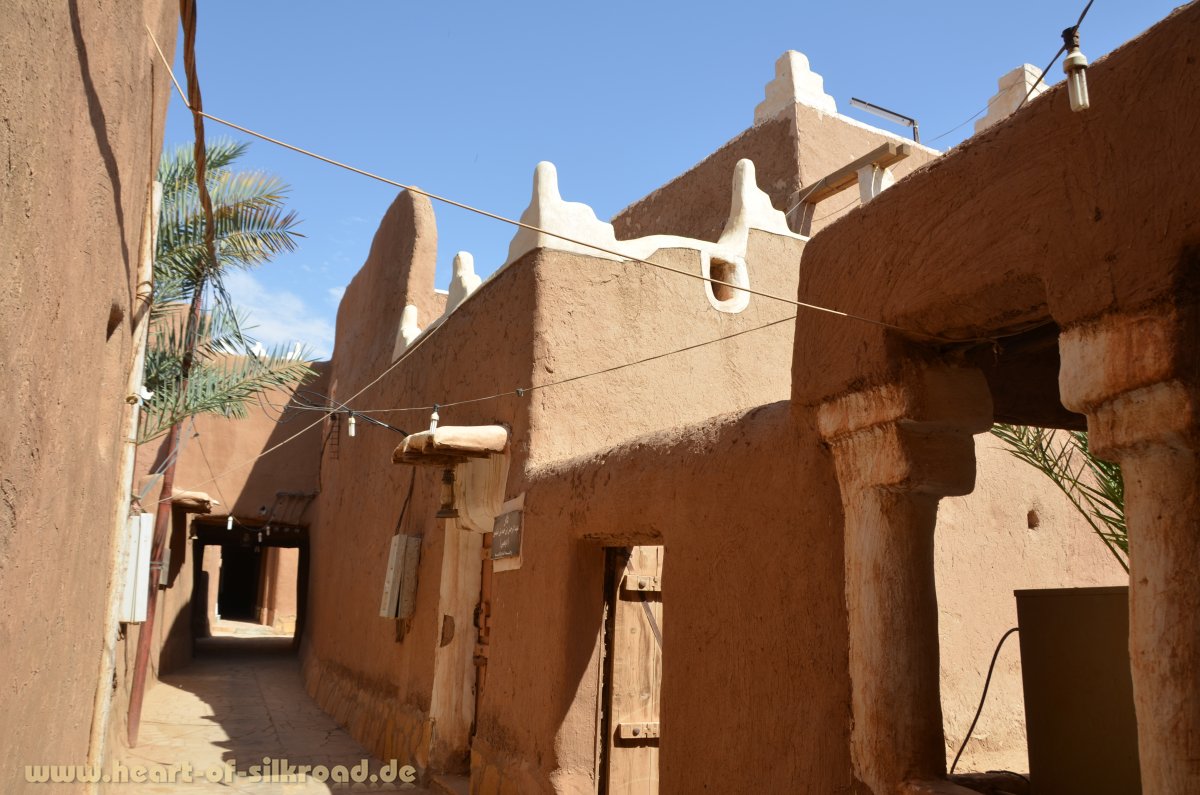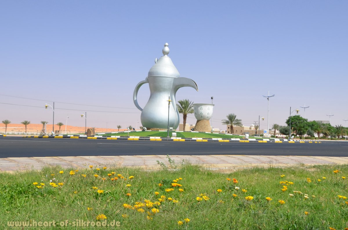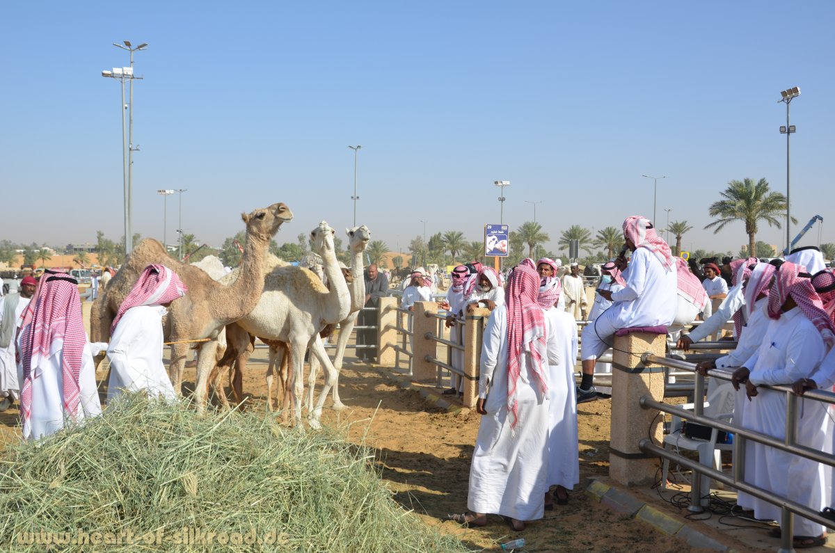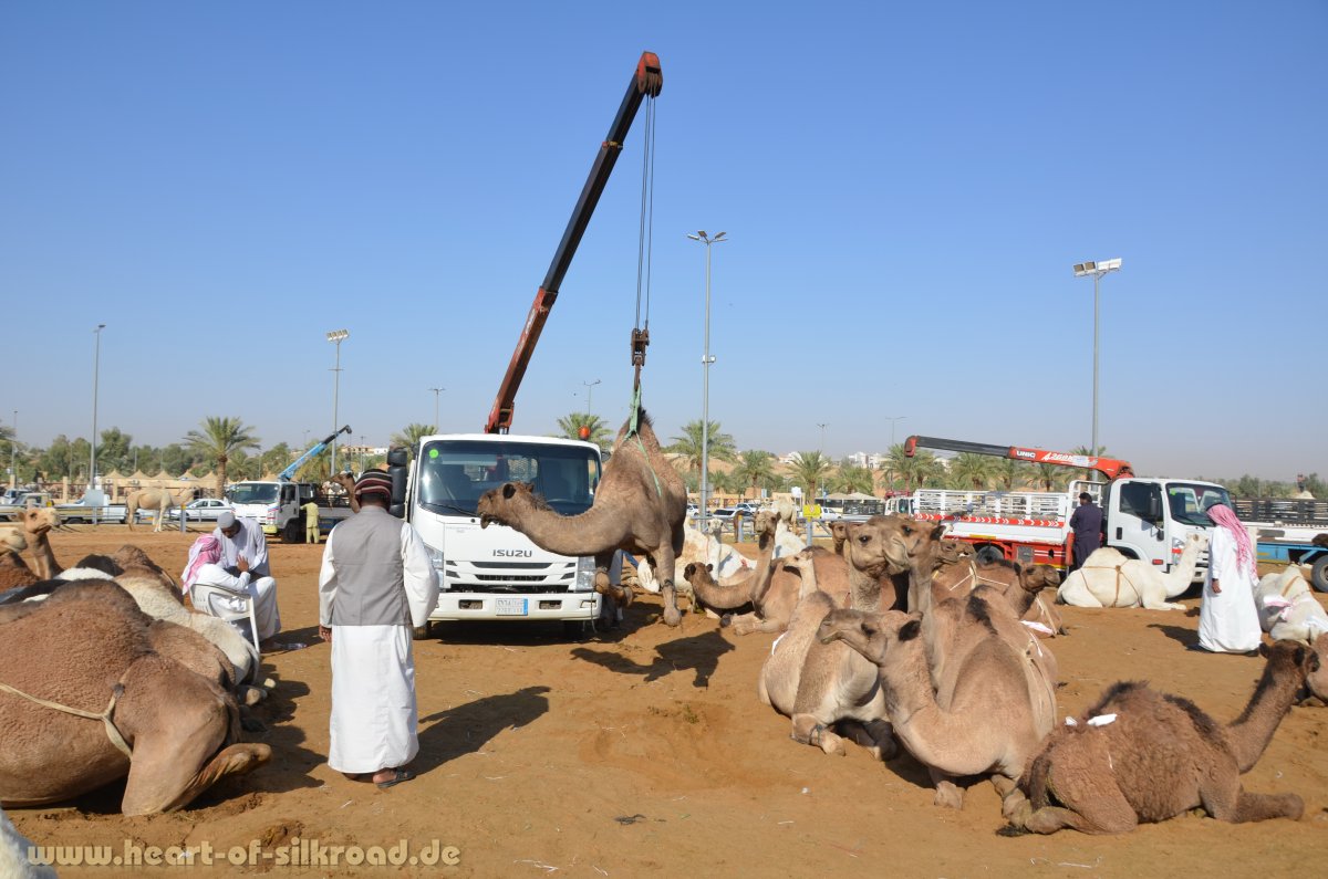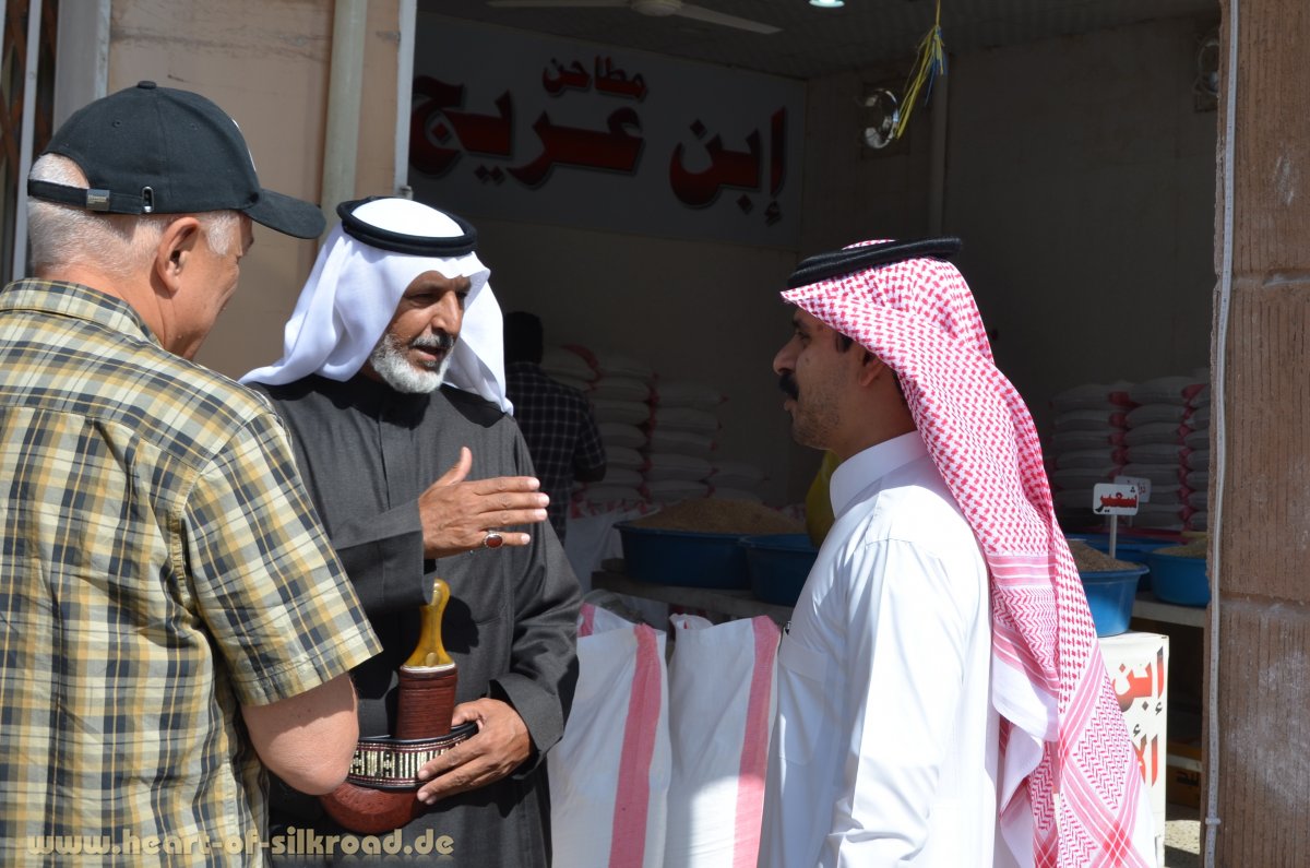 Unser erster Stopp ist die Stadt Shaqra, die mit der Verbreitung des Islams eine bedeutende Pilgerstadt auf der Route nach Mekka wurde. Wir streifen als einzige Touristen durch die beschauliche Altstadt mit den kleinen Gassen und traditionellen Lehmhäusern. Sehr interessant ist auch die nur 20 Kilometer entfernte Altstadt von Ushaiger mit einer großen Stadtmauer und einem kleinen Museum. Richtig lebhaft wird es in Buraydah. Durch diese Stadt führte einst die Pilgerroute von Bagdad nach Mekka. Hier befindet sich neben der weltgrößten Dattelplantage auch der landesweit berühmte Kamelmarkt. Wir können das quirlige Treiben und die Tierauktionen auf einem doch sehr modernen Marktplatz hautnah miterleben. Ersteigerte Kamele werden hier für den Abtransport mit Kränen auf Lastwagen gehoben.