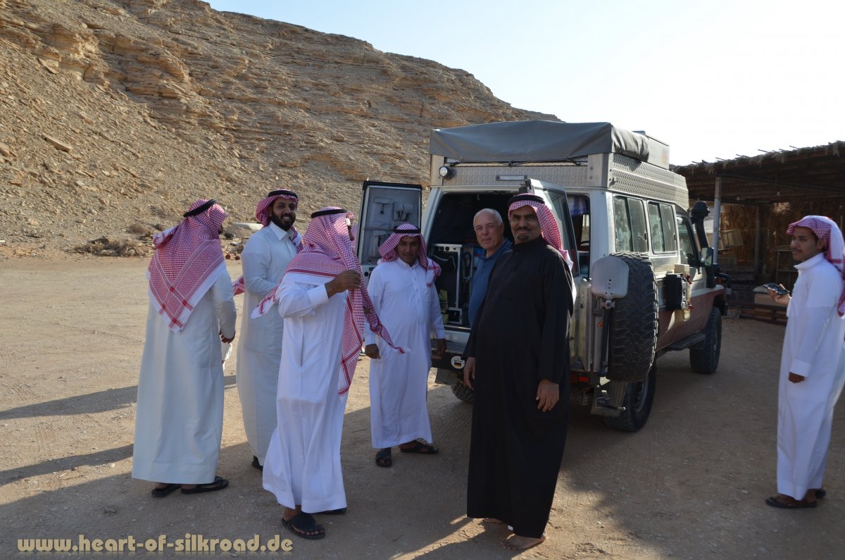 Ein wichtiges Handelszentrum der damaligen Zeit war die Stadt Najran an der jemenitischen Grenze. Najran ist die momentan am schnellsten wachsende Stadt in Saudi-Arabien. Bis heute schwelt hier aber der Konflikt zwischen den Stämmen des Nordjemens und des südwestlichen Teils Saudi-Arabiens. Bei unserer Fahrt durch diese Grenzregion sind wir ständig unter Beobachtung von Sicherheitskräften, die uns in ihren zivilen Fahrzeugen „unauffällig“ folgen.