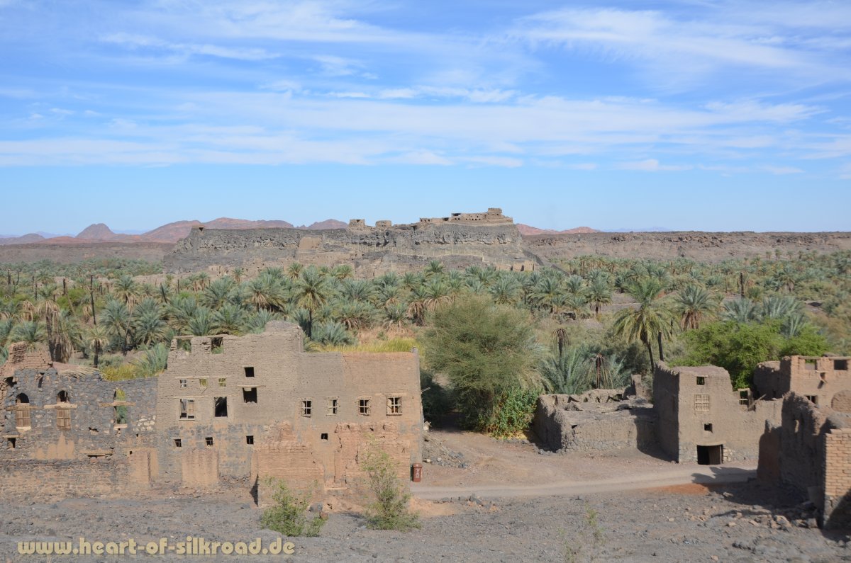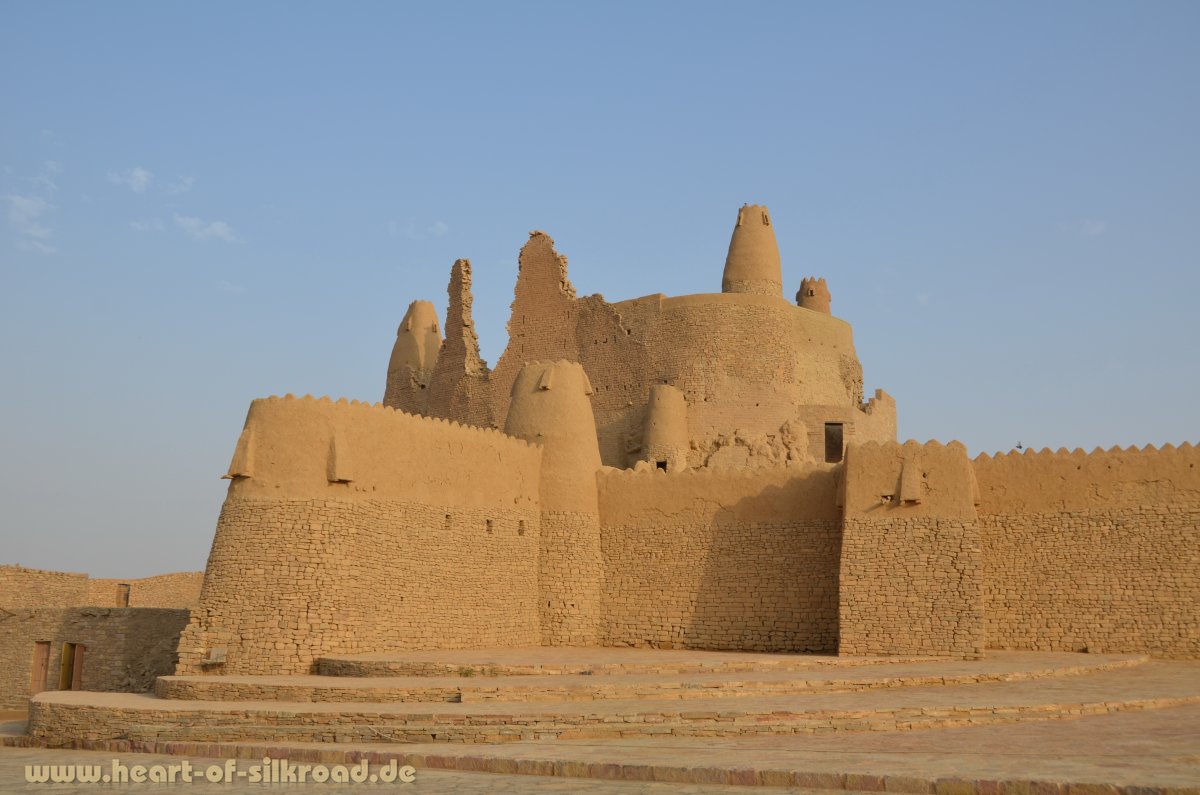 Die weiter nördlich gelegene Oasenstadt Dumat al-Jandal war ein wichtiger Versorgungspunkt für Karawanen, die zu Zeiten der Seidenstraße aus Bagdad kamen und weiter nach Norden über Palmyra im heutigen Syrien bis ans Mittelmeer zogen. In der Altstadt besuchen wir die Qasr Marid Zitadelle. Das örtliche Museum ist leider mal wieder geschlossen. Wir sollen in 3 bis 5 Jahren wiederkommen. Dumat al-Jandal ist der nördlichste Punkt unserer Reise durch Saudi-Arabien.
