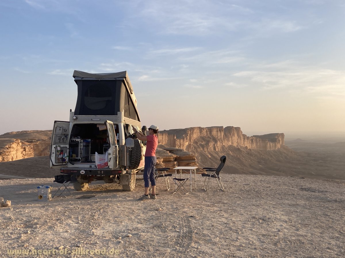 Ganz in der Nähe von Riad ist ein Besuch des „Edge Of The World“ - eine beeindruckende Canyon- und Cliff-Landschaft - sicherlich ein Highlight unserer Reise durch Saudi-Arabien. Wir wählen die herausfordernde Offroad-Route über ein Wüstenplateau, um direkt an der Abbruchkante unser Camp aufzuschlagen. Einfach nur toll!