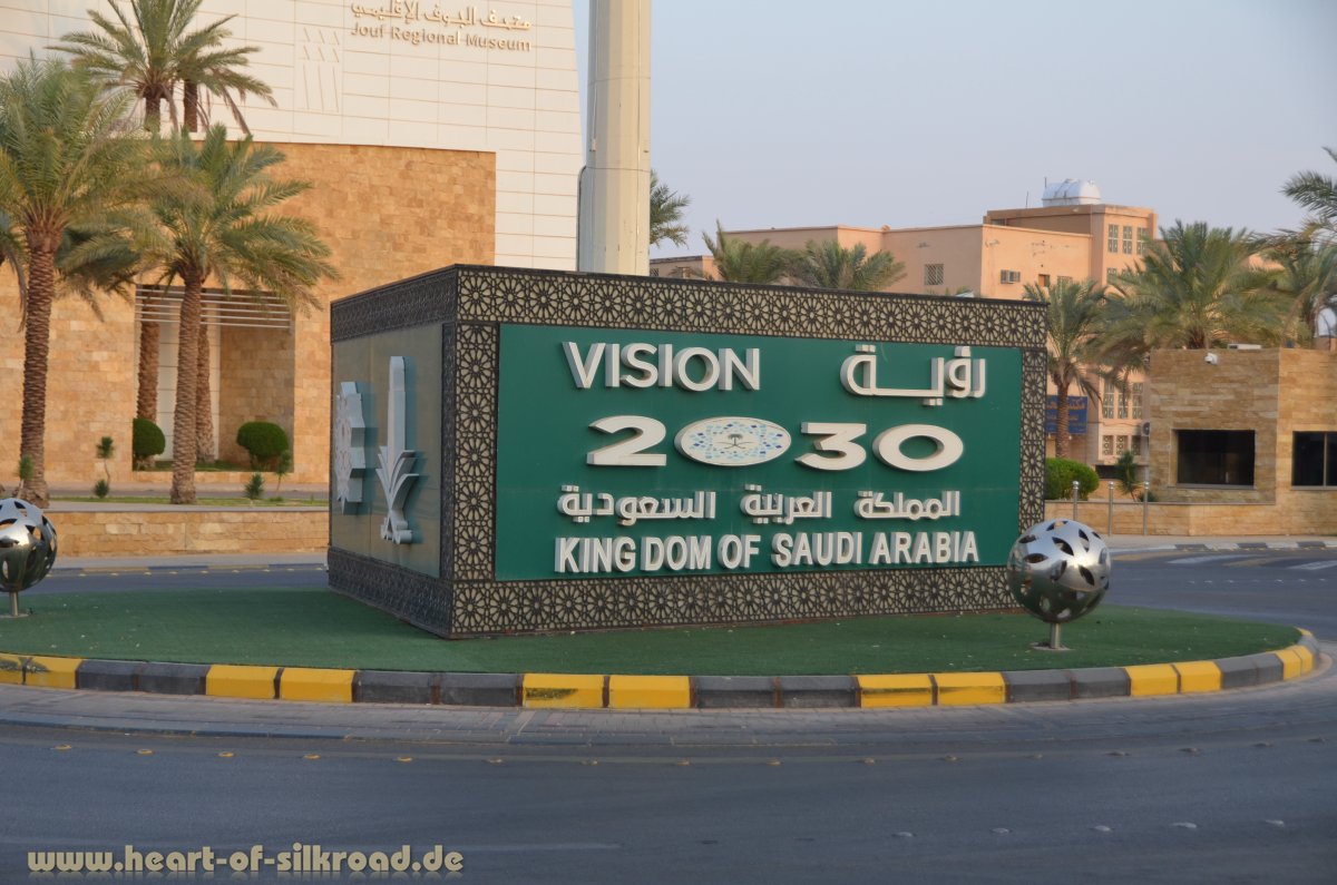 Bei unseren Überlandfahrten und in den Städten weisen überall große Banner und Flaggen auf die im Jahr 2016 erstmals verkündete Vision 2030 hin. Sie gilt als richtungsweisend für die Modernisierung Saudi-Arabiens auf dem Weg zu einer dynamischen Gesellschaft und einer blühenden, wettbewerbsfähigen Wirtschaft, unabhängig von den Erträgen aus dem Öl-Geschäft. Mentor dieser Vision ist Prinz Mohammed bin Salman Al Saud mit Unterstützung seines Vaters. Die Förderung des Tourismus ist nur eines der 13 Umsetzungsprogramme dieser Vision, die ökonomische, ökologische, bildungspolitische, kulturelle, soziale und religiöse Handlungsfelder betreffen. Neben den ökonomischen Zwängen durch die perspektivisch nachlassenden Öleinnahmen, ist es die Jugend Saudi-Arabiens, die auf einen Wandel pocht. Immerhin sind 41% der Saudis unter 24 Jahre alt.