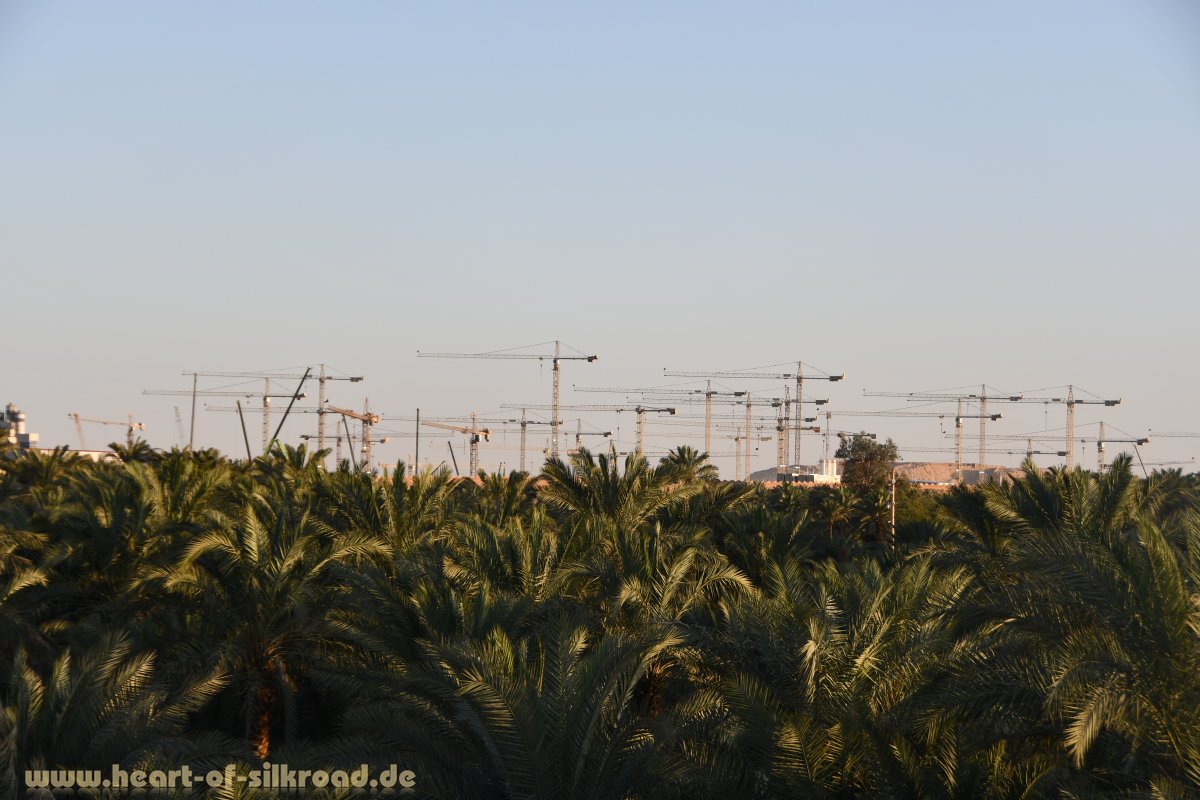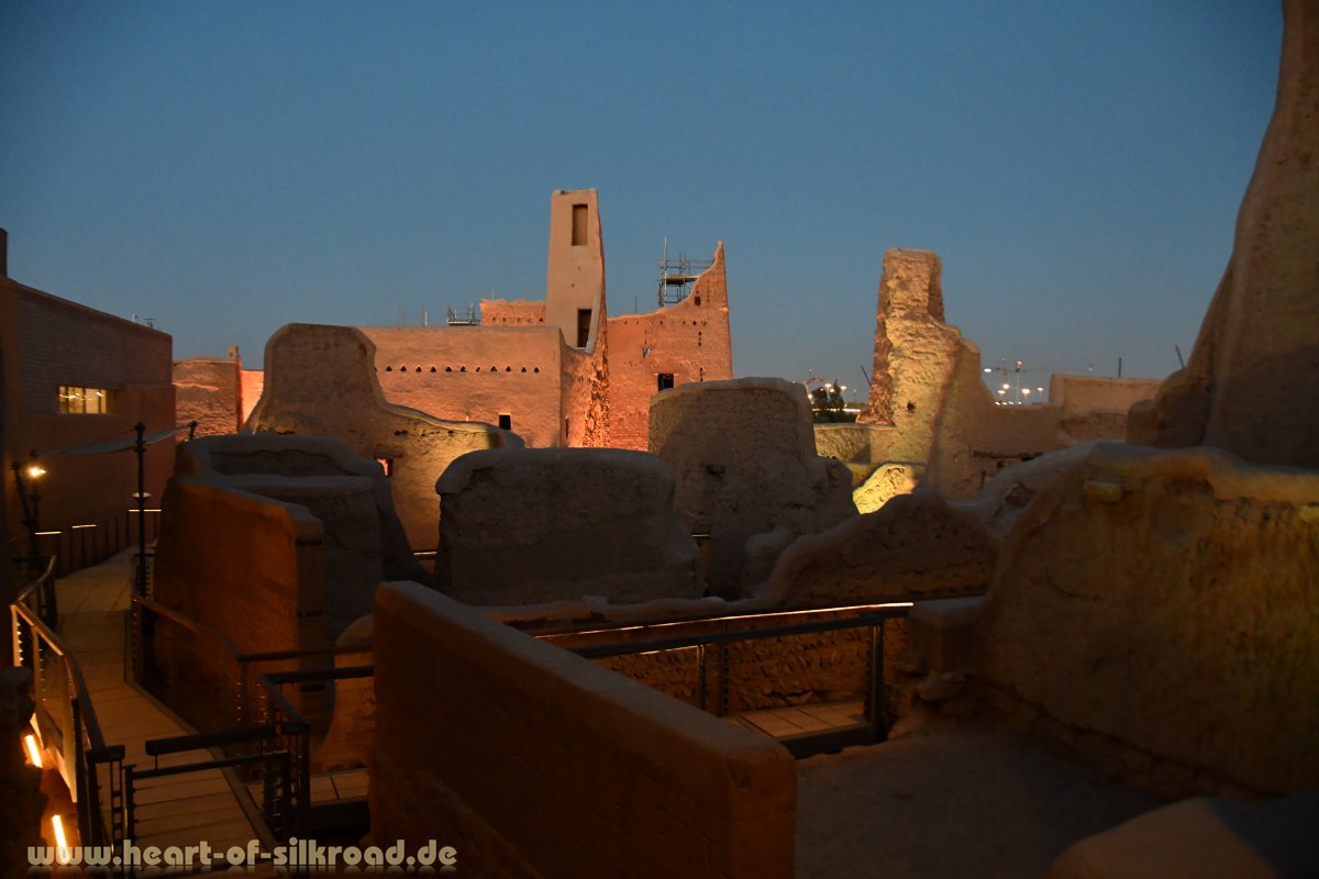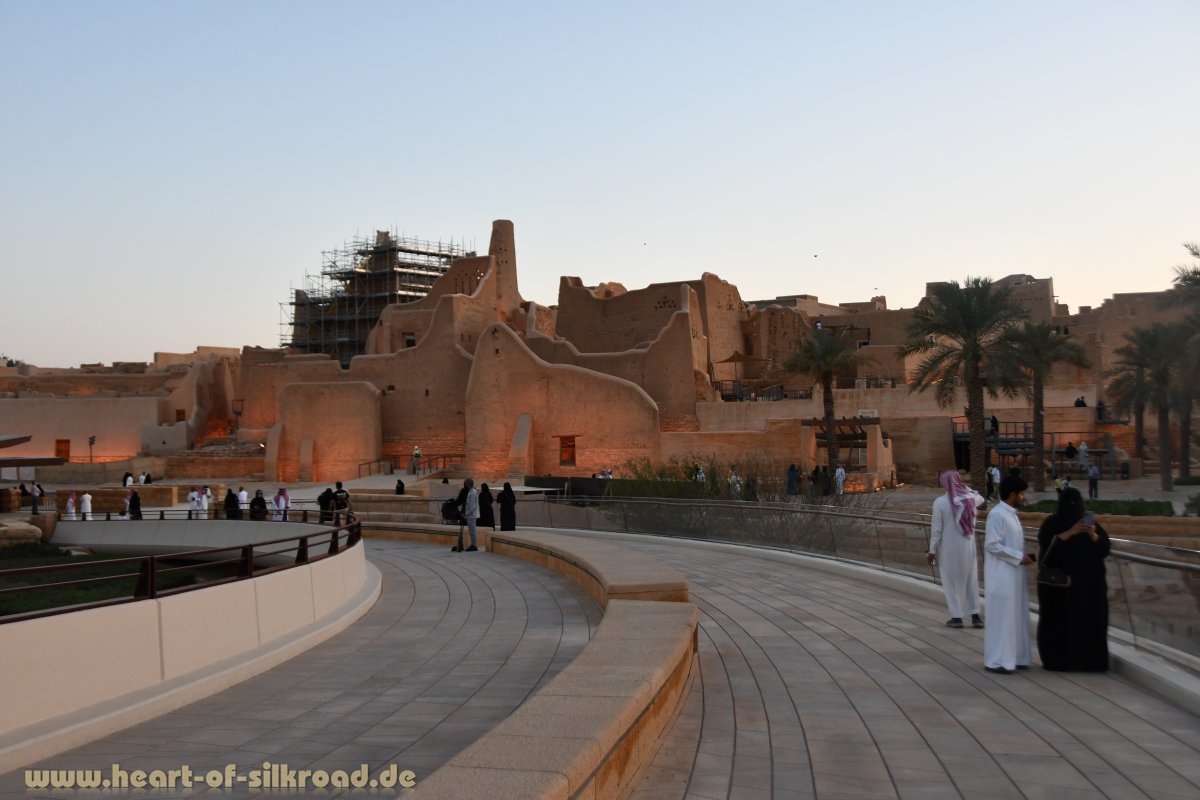 Ein weiteres Highlight in Riad ist die historische Stadt Diriyah. Dieser Komplex aus traditionellen Lehmbauten am Rande des Wadi Hanifa im Viertel Al Bujairi ist ein Labyrinth aus verwinkelten Gassen, Cafés, Restaurants, Museen und Handwerkstätten. Diriyah wurde 1446 gegründet und war von 1727 bis 1818 Sitz der saudischen Königsfamilie. Sie gilt deshalb als Ursprungsstätte für die nationale Identität Saudi-Arabiens. 1818 wurde dieser Bezirk von den Osmanen zerstört, da sie die Expansionspolitik der Sauds fürchteten. Nach umfangreichen und langjährigen Restaurationen wurde das historische Viertel kurz vor unserer Ankunft für die Besucher wieder zugänglich gemacht. In unmittelbarer Nähe wird zur Zeit ein ganz neues Stadtviertel errichtet. Das Projekt wird, wie in Saudi-Arabien üblich, in einer XXL-Dimension umgesetzt.