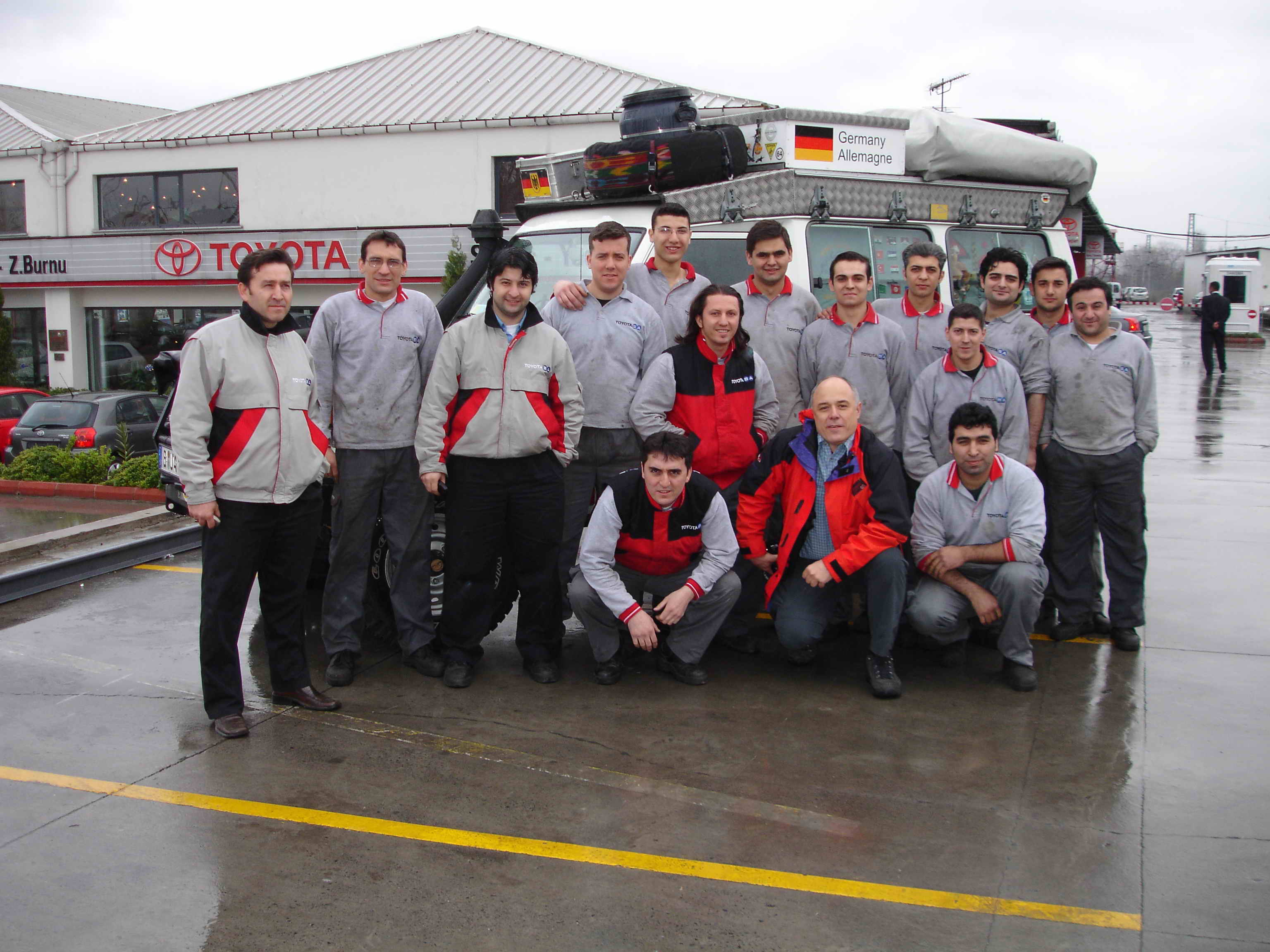 Als wir Istanbul am 24. März verlassen, ist ein Abschiedsbesuch bei dem Toyota-Werkstatt-Team Ehrensache. Man entlässt uns und unser Auto nach zwei Wochen Werkstattaufenthalt mit den besten Wünschen für die weitere Tour.