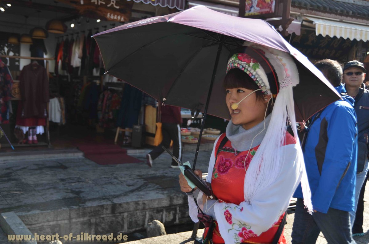 937 n. Chr. entwickelte sich das Königreich Dali zum kulturellen, politischen und wirtschaftlichen Zentrum und war damals ein wichtiger Knotenpunkt der südlichen Seidenstraße. Heute hat man die Stadtmauer und die Häuser in der Altstadt wieder rekonstruiert und einen Shop neben dem anderen angelegt. Hier schieben sich auch in der Nebensaison Hunderte von chinesischen Touristengruppen durch die Gassen.