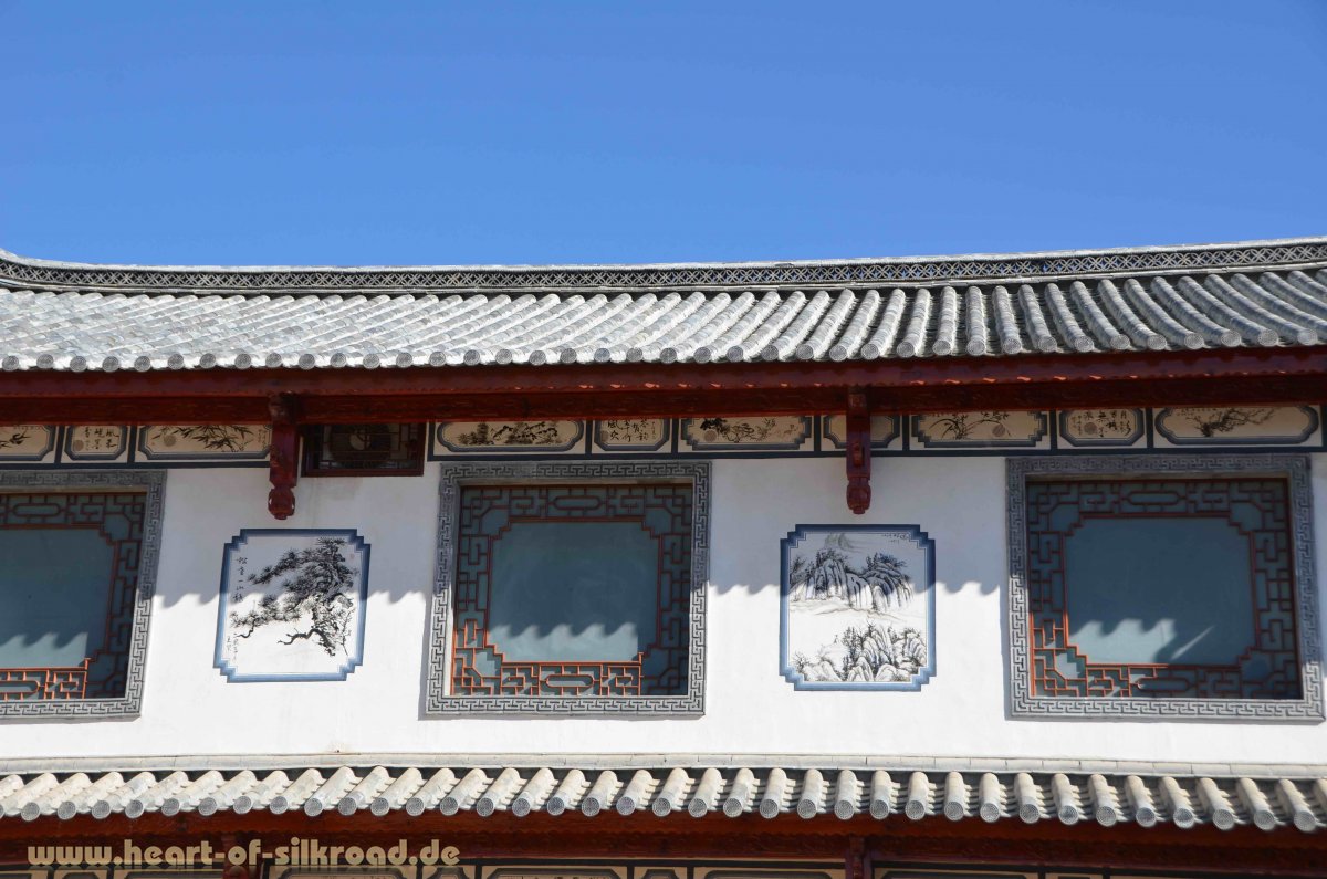 In Shaxi genießen wir die verträumte Atmosphäre mit den typisch weiß getünchten Häusern und den feinen schwarzen-weiß Wandmalereien. In Shaxi scheint die Zeit stehen geblieben zu sein.