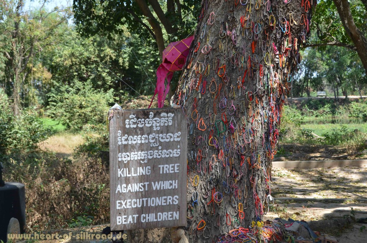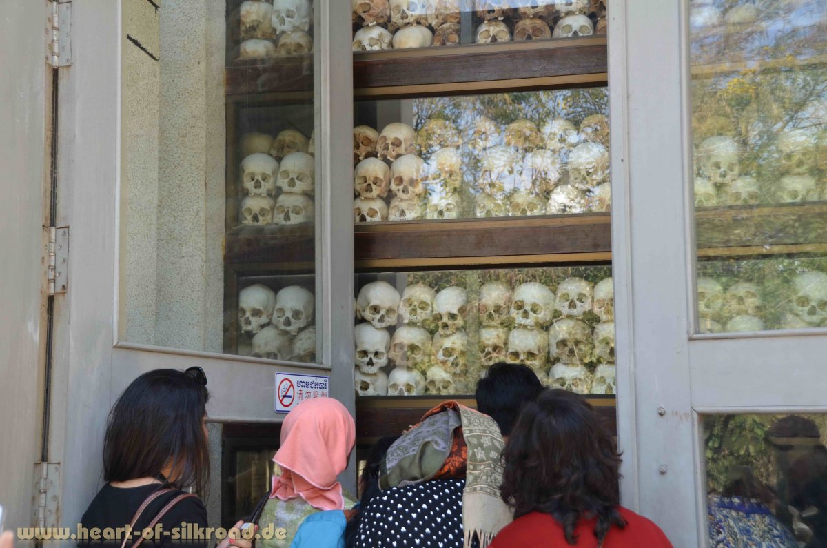 Nach dem Vietnamkrieg war Kambodscha verarmt und das korrupte Königshaus wurde von der Bevölkerung nicht mehr akzeptiert. So war es dem kommunistischen Regime der Roten Khmer ein Leichtes an die Macht zu kommen. Sie lehnten sich gegen den Kolonialismus und den Imperialismus auf, wollten die Gesellschaft radikal verändern und das Land mit brutaler Gewalt in einen kommunistischen Bauernstaat verwandeln. Der König wurde gestürzt und ein Bürgerkrieg endet 1975 mit der Einnahme der Hauptstadt Phnom Penhs. Das dann folgende Terrorregime der Roten Khmer dauerte fast vier Jahre. Doch diese Zeit hat im Gedächtnis der Generation, die überlebt hat, tiefe Spuren hinterlassen. In den ersten Monaten der revolutionären Ära verwandelte sich das Land in ein gigantisches Arbeits- und Gefangenenlager. Insgesamt gab es mehr als 200 Arbeitslager. Die Menschen wurden aus den Städten auf die Reisfelder des Landes deportiert, um dort 12 bis 14 Stunden hart zu arbeiten, Geld wurde abgeschafft, Bücher wurden verbrannt, Banken, Krankenhäuser sowie Schulen wurden geschlossen und jegliche Religionsausübung war verboten. Unter der Diktatur der Roten Khmer wurden massenhaft politische Oppositionelle, Lehrer, Händler und beinahe die gesamte intellektuelle Elite des Landes sowie deren Familienangehörige und Kinder getötet. Im berüchtigten „Sicherheitsgefängnis 21“ in Phnom Penh, einer ehemaligen Schule, die heute zum Museum umgebaut ist, hielt man einst die Gefangenen fest. Wer hier nicht an den Folgen der Folter starb, wurde auf den Killing Fields von Choeung Ek vor den Toren der Stadt umgebracht. Fast 20.000 Exekutionen wurden dort durch Erschießen, Erschlagen, Köpfen mit Feldhacken und Ersticken mittels Plastiktüten vorgenommen. Uns hat am meisten der Baum schockiert, an dem Kleinkinder zerschmettert wurden. Bis zum Ende ihrer Herrschaft 1978 fielen den Roten Khmer nach Schätzungen ca. 3 Millionen Menschen durch Ermordung, Nahrungsmangel oder Krankheiten zum Opfer. Nach ihrer Vertreibung durch vietnamesische Invasionstruppen wurden die Roten Khmer erneut für zwei Jahrzehnte zu einer Untergrundbewegung und dabei zeitweise von verschiedenen, auch westlichen Ländern unterstützt, bis sie sich 1998 endgültig auflösten. An der thailändischen Grenze bei Anglong Veng besuchen wir die letzte Stätte vom „Schlächter Nr. 1“, Pol Pot, der hier 1998 auf Müll und alten Autoreifen verbrannt wurde. Die juristische Aufarbeitung der Verbrechen dauert bis heute an.