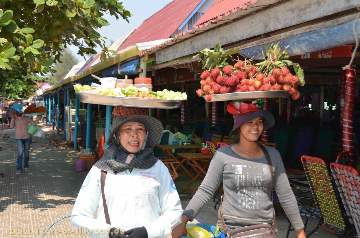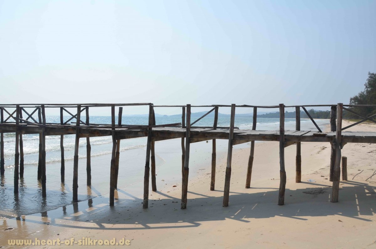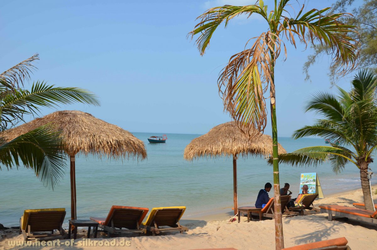 Ein völliges Kontrastprogramm erleben wir im Süden Kambodschas. Dort gibt es eine 450 Kilometer lange Küste, wobei nur ein kleiner Teil wirklich für Touristen zum Baden und Sonnen zugänglich ist. Große Teile der Küste sind Nationalpark oder noch nicht erschlossen. Aber der Bauboom der Chinesen ist bereits voll im Gange und am noch ruhigen Otres Beach bei Sihanoukville müssen die urigen Strandbars schon modernen Hotels und Bungalows weichen. Der Urlaubsstil hat sich hier in den letzten Jahren extrem geändert. Touristen kommen nicht mehr mit Rucksack, um in einfachen Strohhütten zu relaxen, sondern mit Rollkoffer und erwarten Unterkünfte mit Dusche, TV, WiFi und AC. Der Begriff „Geheimtipp“ wurde in den letzten Jahren für dieses tropische Badeparadies zu sehr strapaziert. Ein Tag am Stand kann hier schnell in Stress ausarten. „Hello Mister, massage, coconut, cold drinks ?“ Es vergehen keine 10 Minuten, in denen man nicht von Strandverkäufern angesprochen wird oder Damen Massagen, Pedi-oder Maniküre anbieten. In den Ferien und an den Wochenenden kommen die Einheimischen aus den Dörfern und wohlhabende Kambodschaner reisen aus Phnom Penh an. Sie alle hinterlassen nach ihrem Urlaub dann Berge von Müll.
