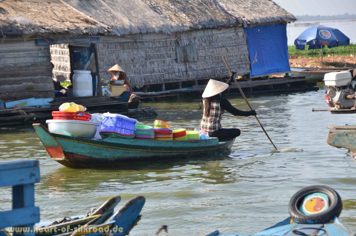 Nach so vielen traurigen Erlebnissen verlassen wir die staubige Hauptstadt, die eine einzige Baustelle ist und fahren zum Tonle Sab See. Hier haben sich viele Vietnamesen angesiedelt, da sie illegal in Kambodscha leben und deshalb kein Land besitzen dürfen. So wohnen sie auf ihren Booten, die teils zu kleinen Ortschaften angewachsen sind. Auch wenn es dort sehr nach getrocknetem Fisch riecht, ist dieser Abstecher absolut lohnenswert.