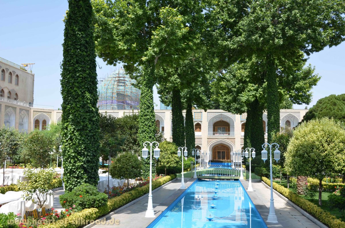 Unser nächstes Ziel ist das Zagros-Gebirge im Südwesten des Irans. Mittlerweile sind die Temperaturen auf über 43°C im Schatten gestiegen. Das im Iran obligatorische Kopftuch und der langärmelige Mantel sind für Ute schon sehr schweißtreibend. Über gut ausgebaute Straßen und Autobahnen erreichen wir die Stadt Isfahan, die Seele Irans. Wie schon 2002 begeistern uns hier die vielen historischen Brücken mit ihren Arkaden über den Zayandeh-Rud (den ewigen Fluss) und die grünen Uferpromenaden, der riesige Meidan-e-Imam, die Imam-Moschee und der große Basar. Zum absoluten Highlight gehört in Isfahan sicher die Übernachtung in der ehemaligen königlichen Karawanserei.