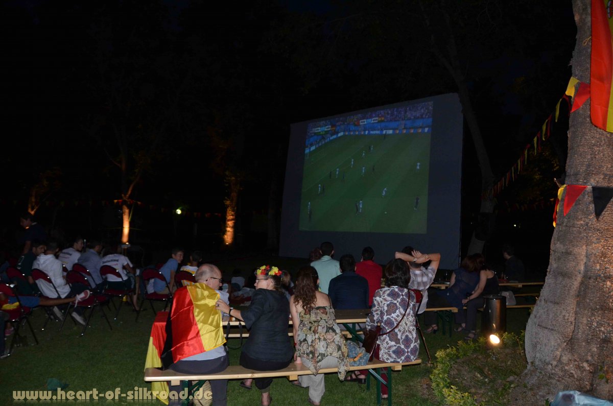 Unser erstes Ziel ist das wirklich gastfreundliche Land Iran, wo wir erst einmal unsere Freunde Lidia und Hassan in Teheran besuchen. Hassan betreibt dort seit einigen Jahren sehr erfolgreich die Eisdiele San Marco mit absolut leckerem italienischen Eis. Wenn wir mit unserem Toyota vor seinem Laden stehen, dann steigt der Umsatz sicher, denn Andreas wird nicht müde die vielen Fragen der Passanten zu beantworten. Im Gegenzug wollen uns die Iraner dann immer einladen. Leider müssen wir ganz viele Einladung ausschlagen, da unsere Zeit im Iran durch die Visa und unseren Reiseplan begrenzt ist. Unser besonderer Dank gilt an dieser Stelle Lidia und Hassan, bei denen wir in Teheran wohnen durften sowie Mitra, die uns mit der leckeren persischen Küche verwöhnt hat. Und von Anette und Daniel haben wir noch wertvolle Tipps für unsere Tour durch den Iran bekommen. Aber auch das Public Viewing in der Deutschen Botschaft zum WM-Spiel Deutschland-USA werden wir sicher noch lange in Erinnerung behalten. Während der WM war es auch der Deutschen Botschaft nicht möglich, die Fußballspiele über einen deutschen Sender zu zeigen, da das ZDF- und ARD- Programm aus lizenzrechtlichen Gründen für vier Wochen nicht über Satellit gesendet wurde. So sehen die Gäste des Botschafters das Spiel notgedrungen über einen Schweizer Satellitenkanal. Wahrscheinlich hat sich bei den Verantwortlichen der öffentlich-rechtlichen Rundfunkanstalten niemand darüber Gedanken gemacht, dass diese kommerziell getriebene Maßnahme die Menschen im Ausland für viele Wochen von der allgemeinen deutschen Berichterstattung weit über die WM-Berichte hinaus abgeschnitten hat.