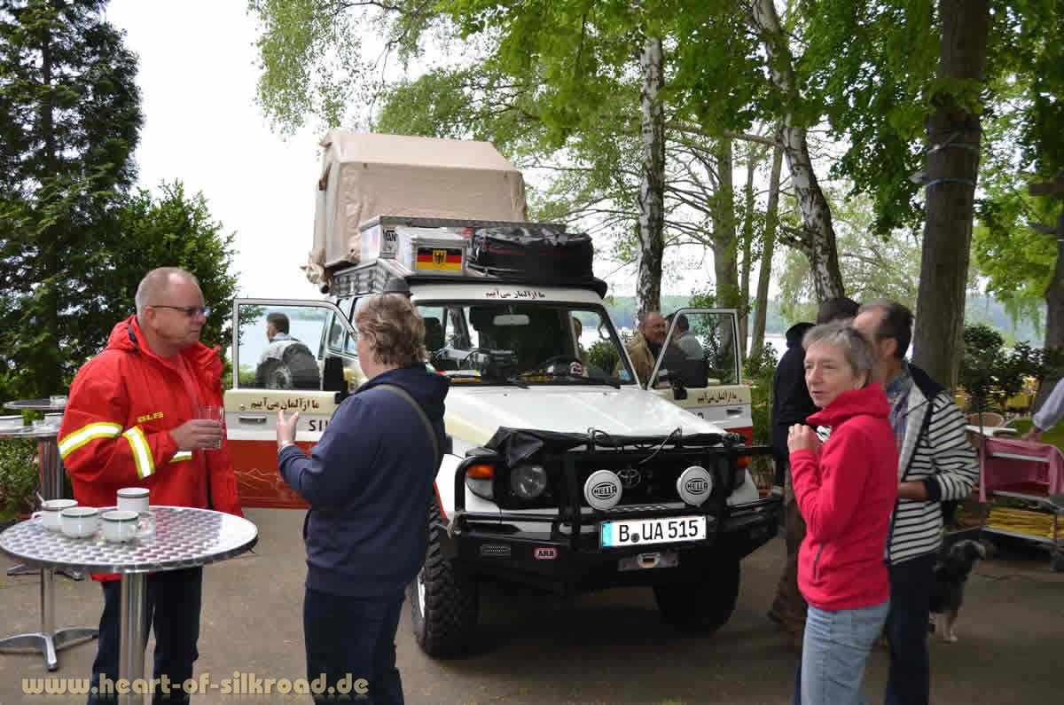 Unsere Einladung zur Abschiedsveranstaltung haben wir traditionell mit einem Spendenaufruf für die Kinderhilfe Afghanistan verbunden. Insgesamt sind 739,- € zusammengekommen. Dieser Beitrag wird ausreichen, um in Afghanistan einen Lehrer für ein Jahr zu finanzieren – vielen Dank für diese nachhaltige Entwicklungshilfe ! Und in unserem Blauen (Silkroad-) Gästebuch können sich wie bei den bisherigen Reisen die Gäste und später alle Reisebekanntschaften verewigen.