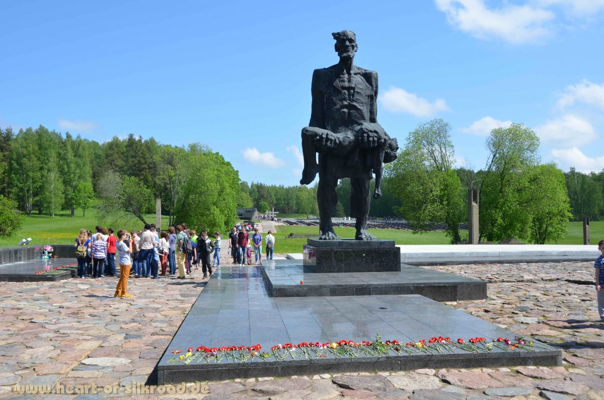 Eine weitere Gedenkstätte besuchen wir in Khatyn. Das Dorf Khatyn wurde im März 1943 von der Deutschen Wehrmacht überfallen, alle Häuser niedergebrannt und bis auf wenige Überlebende alle Zivilisten brutal ermordet. Wir sind erschüttert, was hier geschehen ist. Und Khatyn steht stellvertretend für über 600 Dörfer und Orte in Weißrussland, die ein gleiches Schicksal hatten. Wenn man die vielen Besuchen an den Mahnmalen sieht, verstehen wir, warum die Angst vor „Angriffen aus dem Westen“ so sehr in der russischen Volksseele eingebrannt ist.