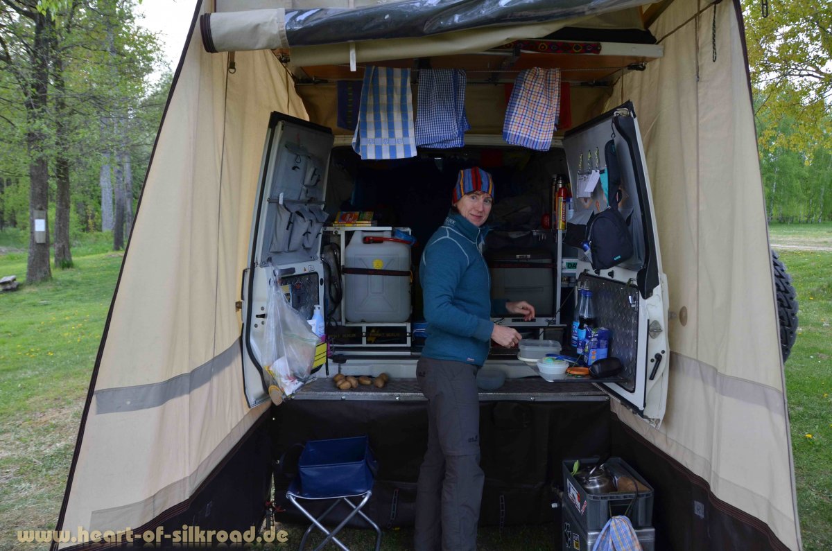Wir finden abseits dieser Orte aber immer wieder schöne Camps und Plätze zum Verweilen. Trotz der kühlen Temperaturen Anfang Mai gehen wir in Nationalparks wandern und fahren auf der Krutynia Kanu. Nachts messen wir im Zelt ein Grad Celsius.