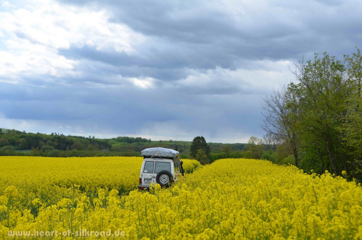 Eigentlich wollten wir in Russland über Rostow am Don in den Kaukasus fahren, aber diese Stadt liegt direkt an der Ostgrenze zur Ukraine und war in den letzten Wochen Aufmarschgebiet des russischen Militärs. Wir nehmen da lieber den Umweg über Wolgograd in Kauf. Auf den sogenannten Magistralen kommen wir mit einer Höchstgeschwindigkeit von 90 Km/h und den unzähligen Orts-und Stadtdurchfahrten nur mühsam voran. Wir brauchen für die 1100 Kilometer bis Wolgograd drei Tage. Doch wir werden mit wunderschönen Camps am Abend belohnt und endlich ist es auch wärmer geworden.