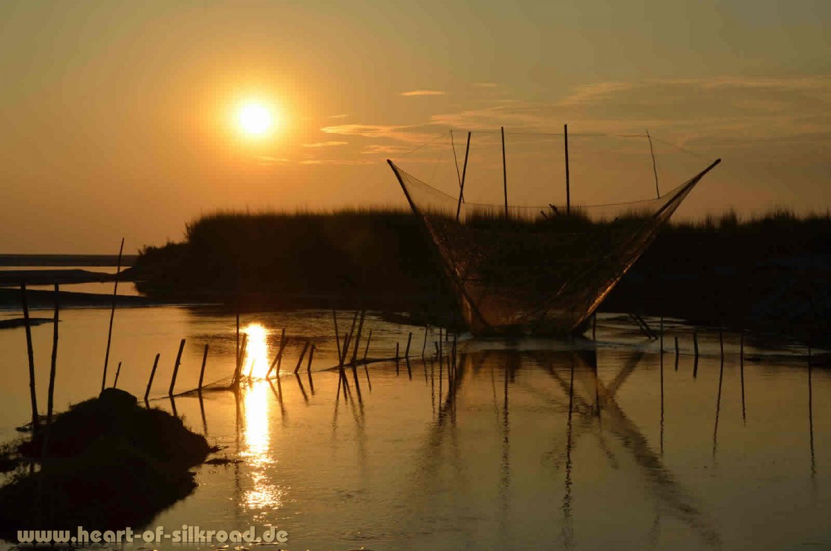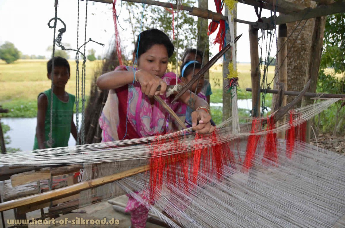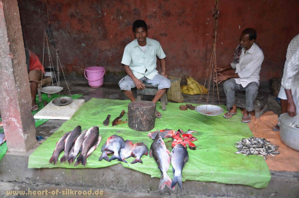 Die Flussinsel Majuli im Brahmaputra ist nicht nur wegen des jährlichen Festivals ein absoluter Geheimtipp, sondern auch wegen der noch touristischen Unberührtheit. So bleiben wir einige Tage und erkunden die Insel zunächst einmal mit einem indischen Fahrrad ohne Gangschaltung, aber mit zerrissenem Sattel und dürftiger Bremse. Die Menschen leben hier noch ganz ursprünglich in Bambushütten, die wegen des Monsuns auf Pfählen gebaut sind. Sie sind überwiegend Selbstversorger und besitzen Hühner, Schweine, Ochsen und oft ein Stück Land, wo sie Reis und Gemüse anbauen. Zusätzlich wird noch Fischerei mit traditionellen Netzen, Reusen und Fischfallen betrieben.