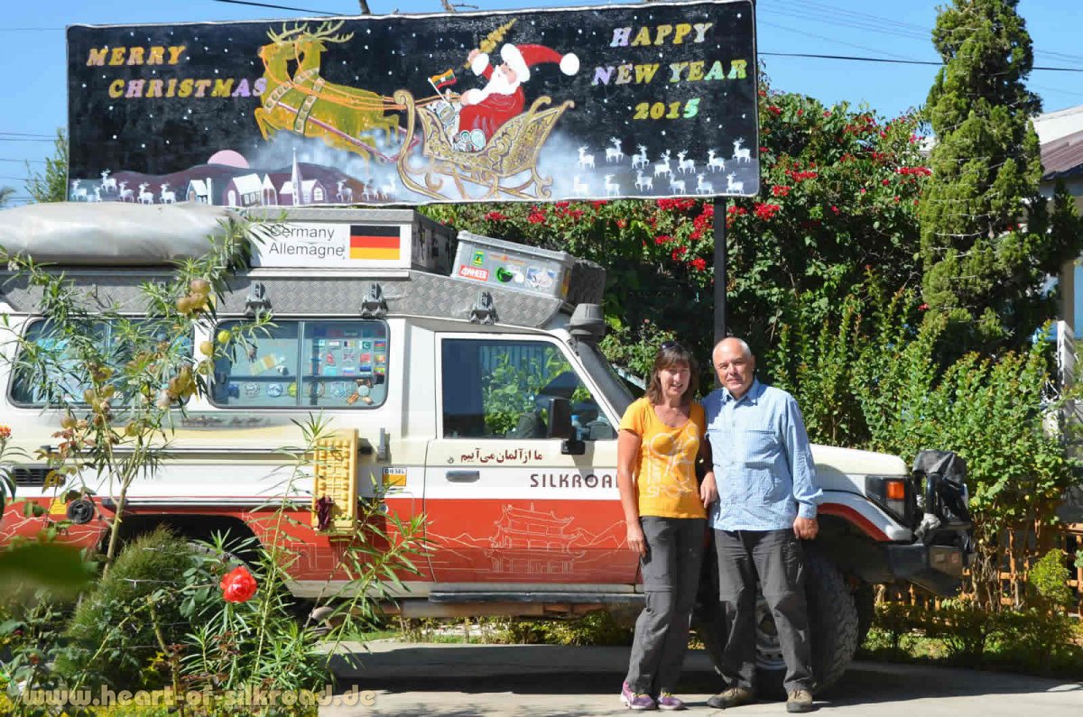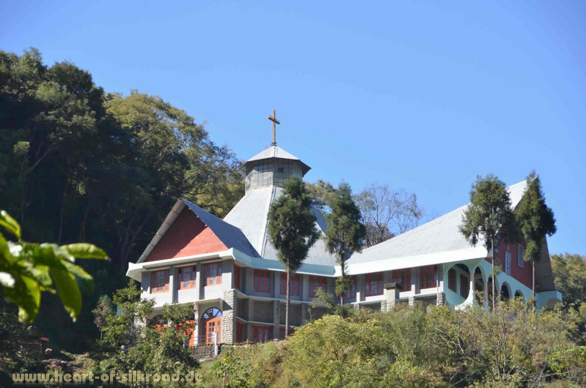 Die vielen christlichen Kirchen fallen uns extrem ins Auge, da sie immer auf Hügeln gebaut wurden und etwas überdimensioniert sind. In der Vorweihnachtszeit hängen an diesen Kirchen große Sterne und in den örtlichen Geschäften kann man etwas kitschigen Weihnachtsschmuck und künstliche Weihnachtsbäume kaufen. Inmitten von Bananenplantagen und Palmenhainen wirkt das alles sehr befremdlich auf uns. In der Hauptstadt Kohima stoßen wir immer wieder auf Armee und Polizei. Taxis und Busse werden kontrolliert aber wir werden zum Glück durchgewinkt. Das wundert uns schon, aber vielleicht wirkt ja unsere große Deutschlandplakette an der oberen Kiste sehr offiziell. Kohima war im II. Weltkrieg aber auch Schauplatz von blutigen Kämpfen. Ein großer Kriegsgräberfriedhof erinnert daran, dass hier über 2000 britische und indische Soldaten in einer Schlacht gegen die Japaner im April 1944 gefallen sind.