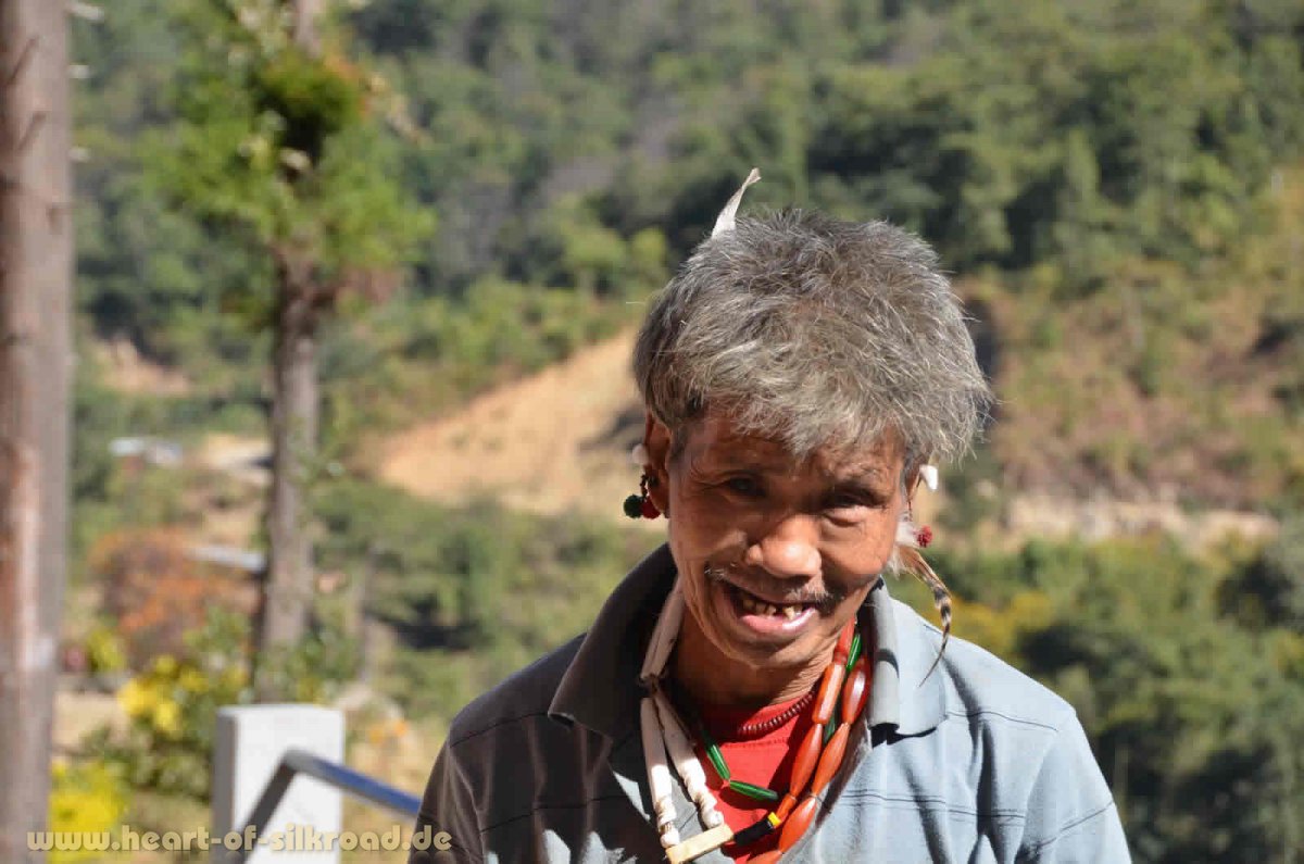 Nagaland ist der nordöstlichste Bundesstaat in Indien und überwiegend bergig mit einer vielfältigen Flora. Viele rote und weiße Büsche von Weihnachtssternen, die uns daran erinnern, dass diese Pflanzen zuhause gerade überall als Topfpflanzen angeboten werden. Die Region Nagaland hat eine sehr bewegte Geschichte hinter sich, denn die aus Tibet stammenden Bewohner waren früher gefürchtete Kopfjäger. Mit der Missionierung im letzten Jahrhundert konvertierten viele Angehörige der insgesamt 16 Stämme zum Christentum. Mit dem Christentum legten die Bewohner auch ihre Naturreligionen ab und die Kopfjägerei wurde verboten. In der Region Mon an der Grenze zu Myanmar ist 1964 der letzte „offizielle Fall“ von Kopfjägerei bekannt geworden. Die Nagas glaubten, dass das Wissen und die mentale Stärke auf den eigenen Stamm übergehen, wenn man den Kopf eines Gegners als Kriegstrophäe mitbrachte.